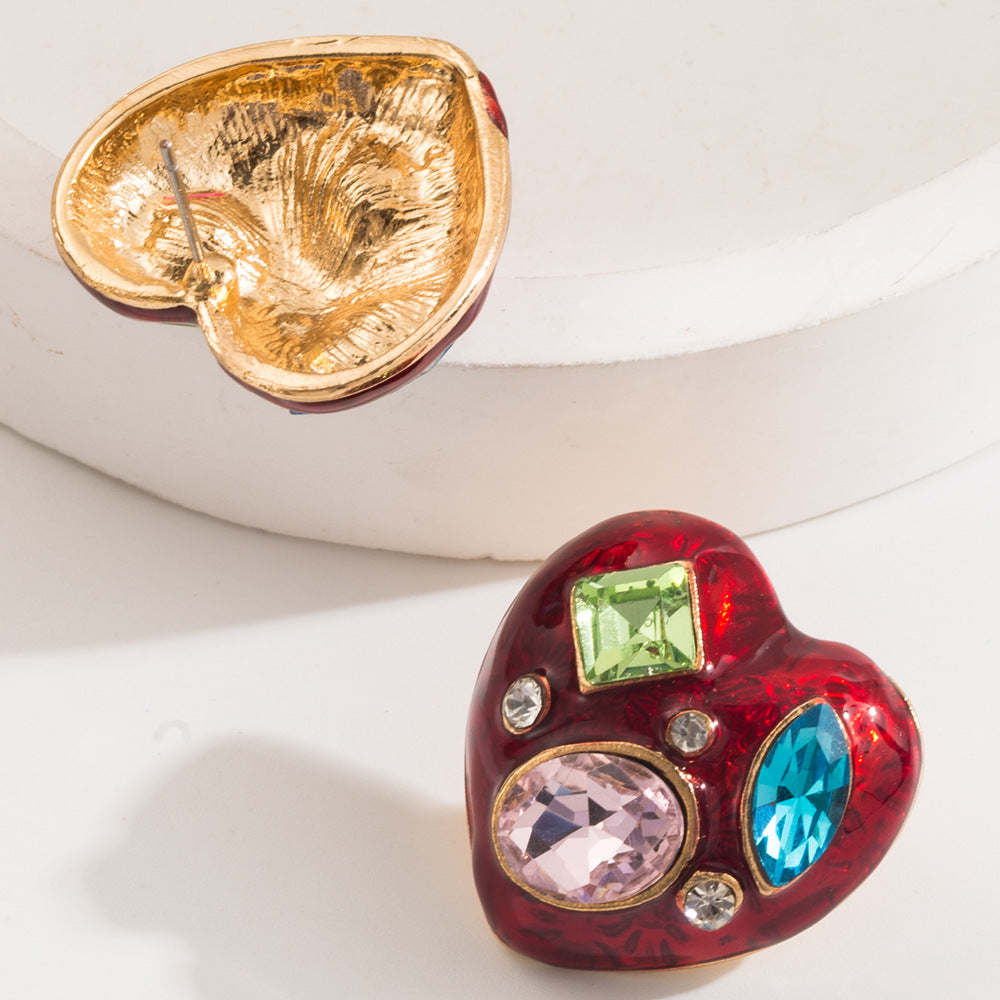 Alloy Drop Oil Inlaid Color Glass Drill Earrings