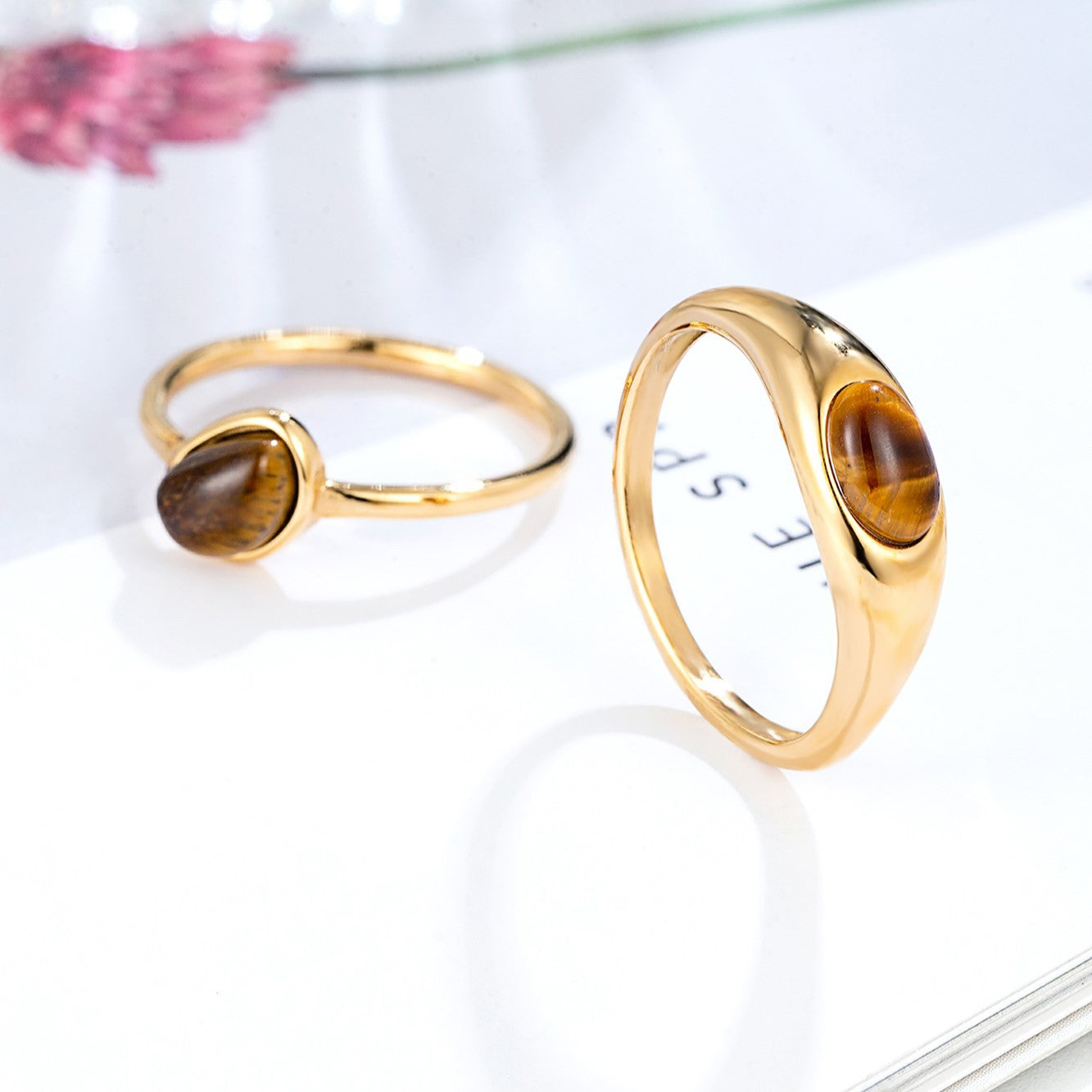 Arc Geometric Tigereye Light Luxury High-grade Rings