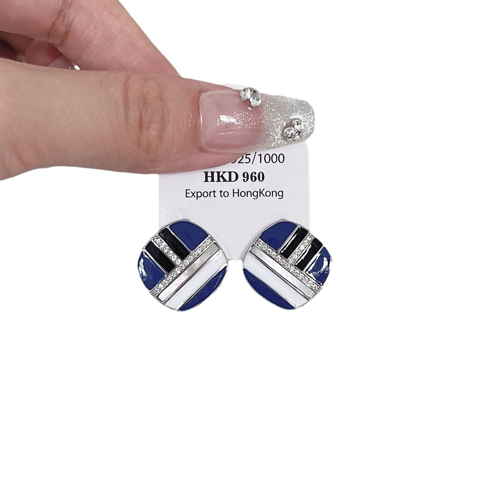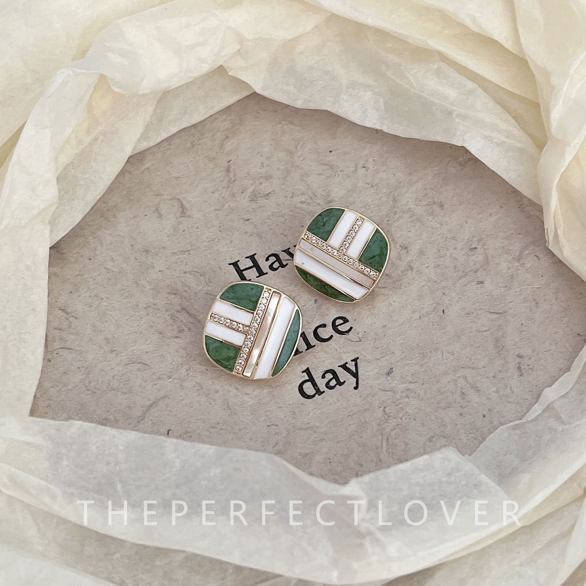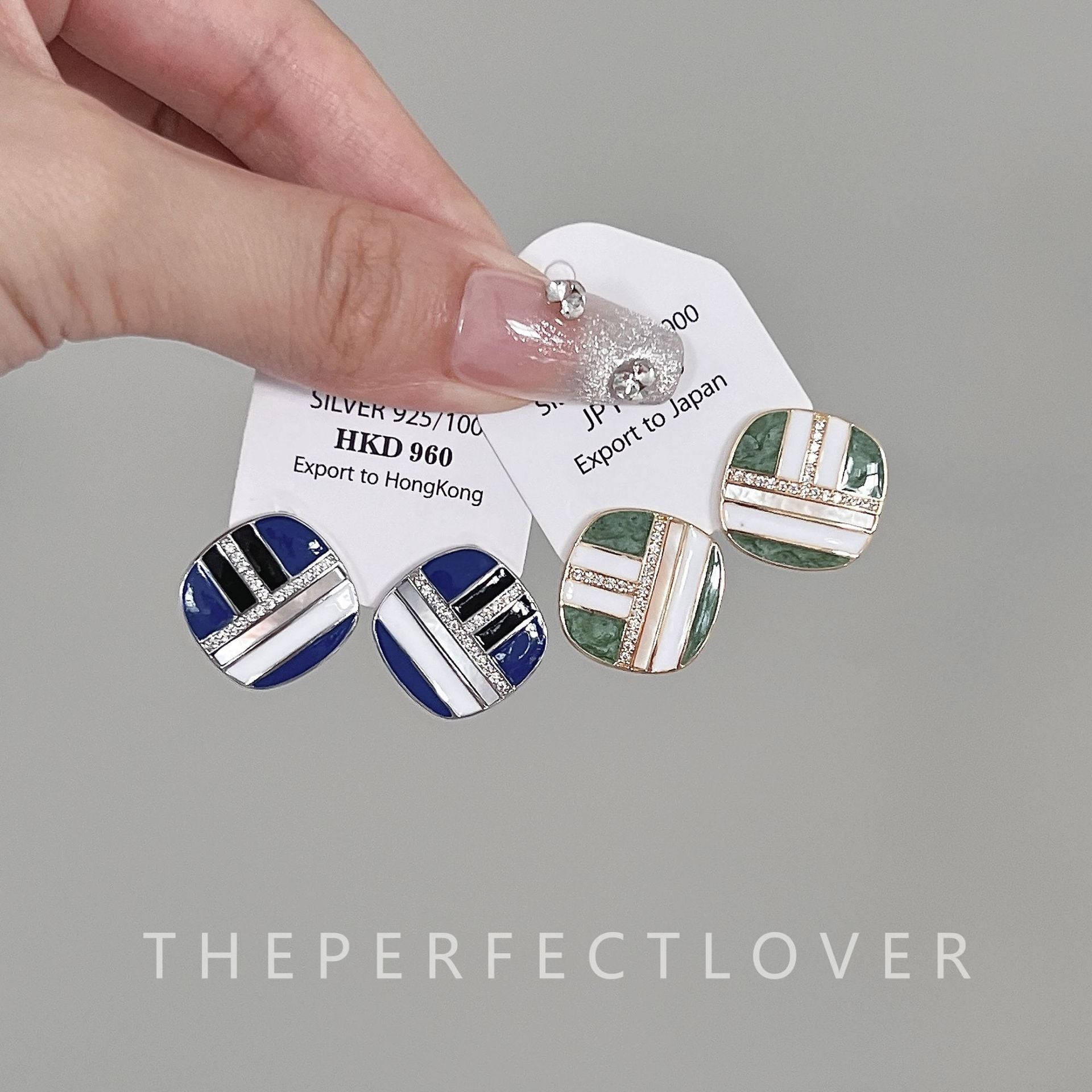 Art Enamel Craft Zircon Shell Square Design High-grade Earrings