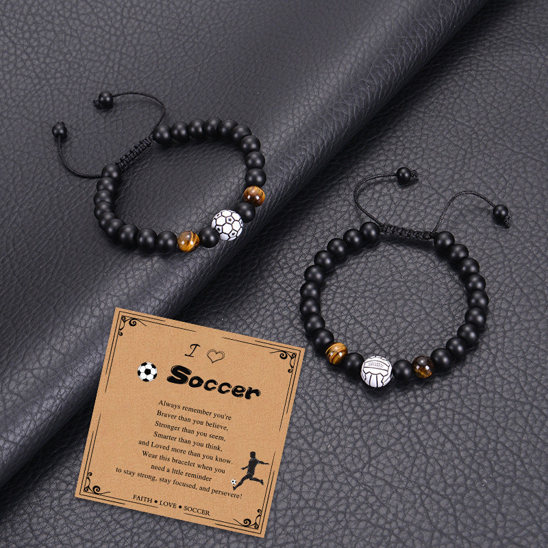 Beaded Black Frosted Football Tennis Basketball Bracelets
