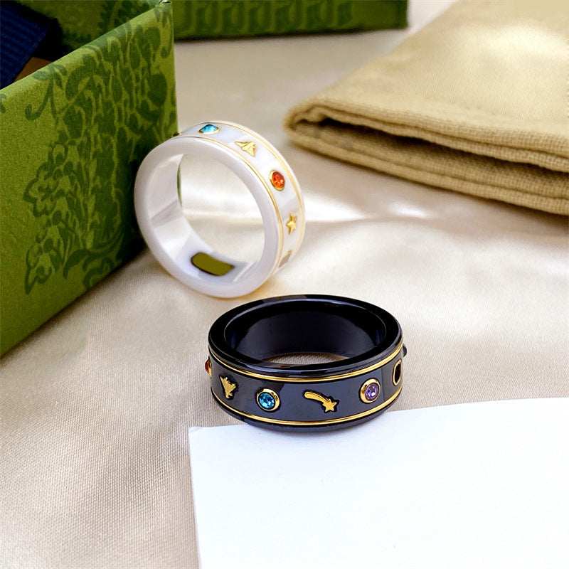 Bee Planet Ceramic Trendy Unique Couple Black Rings