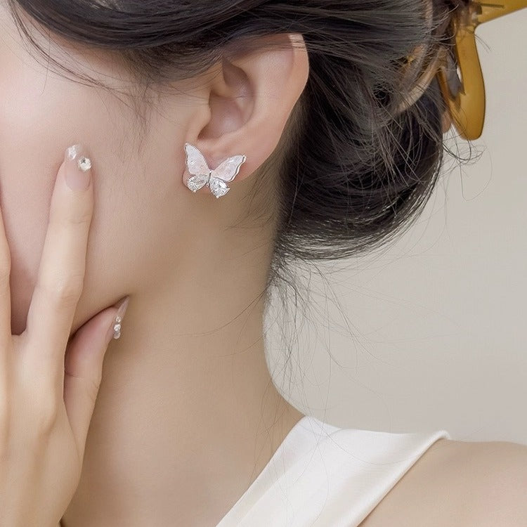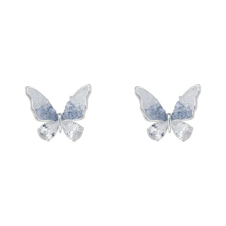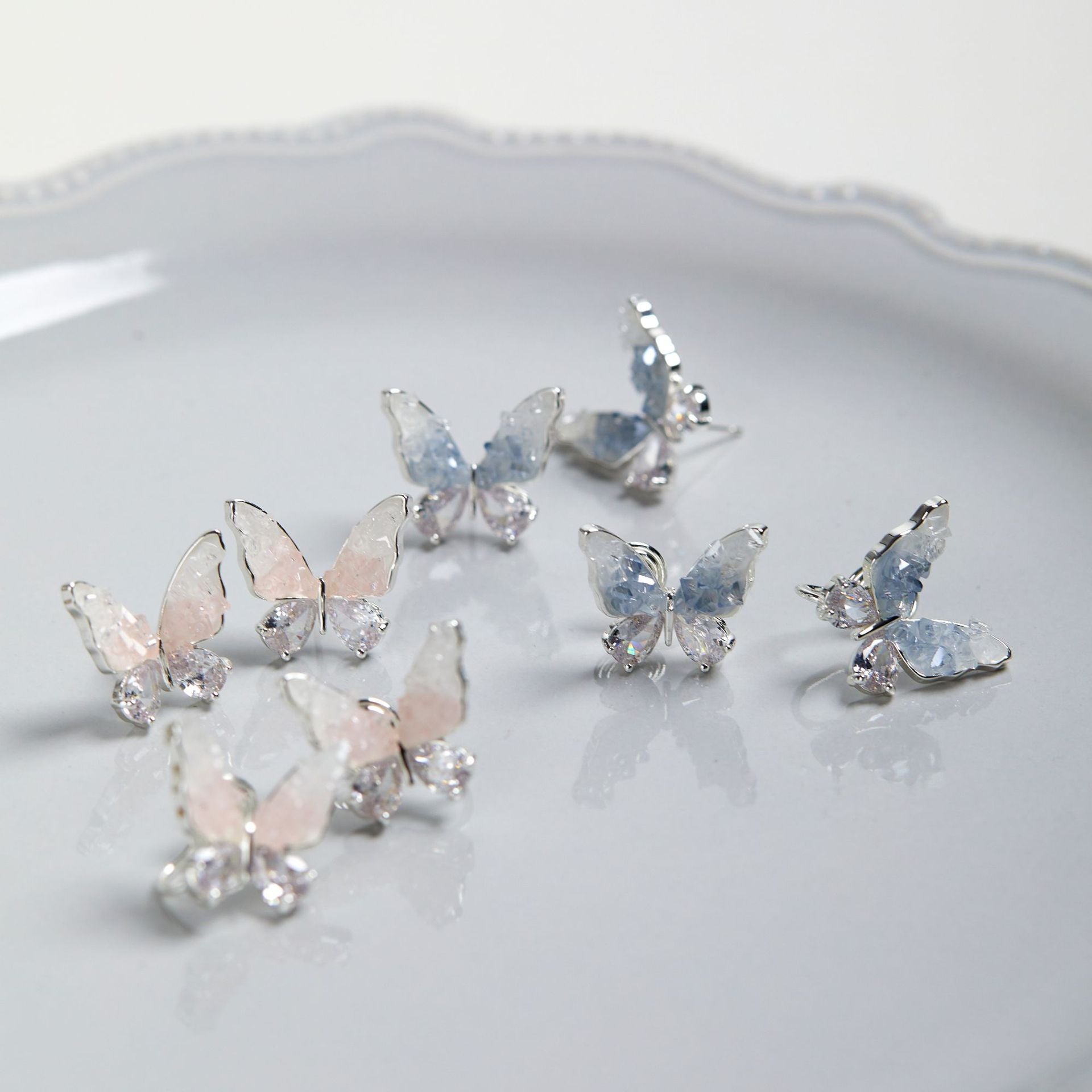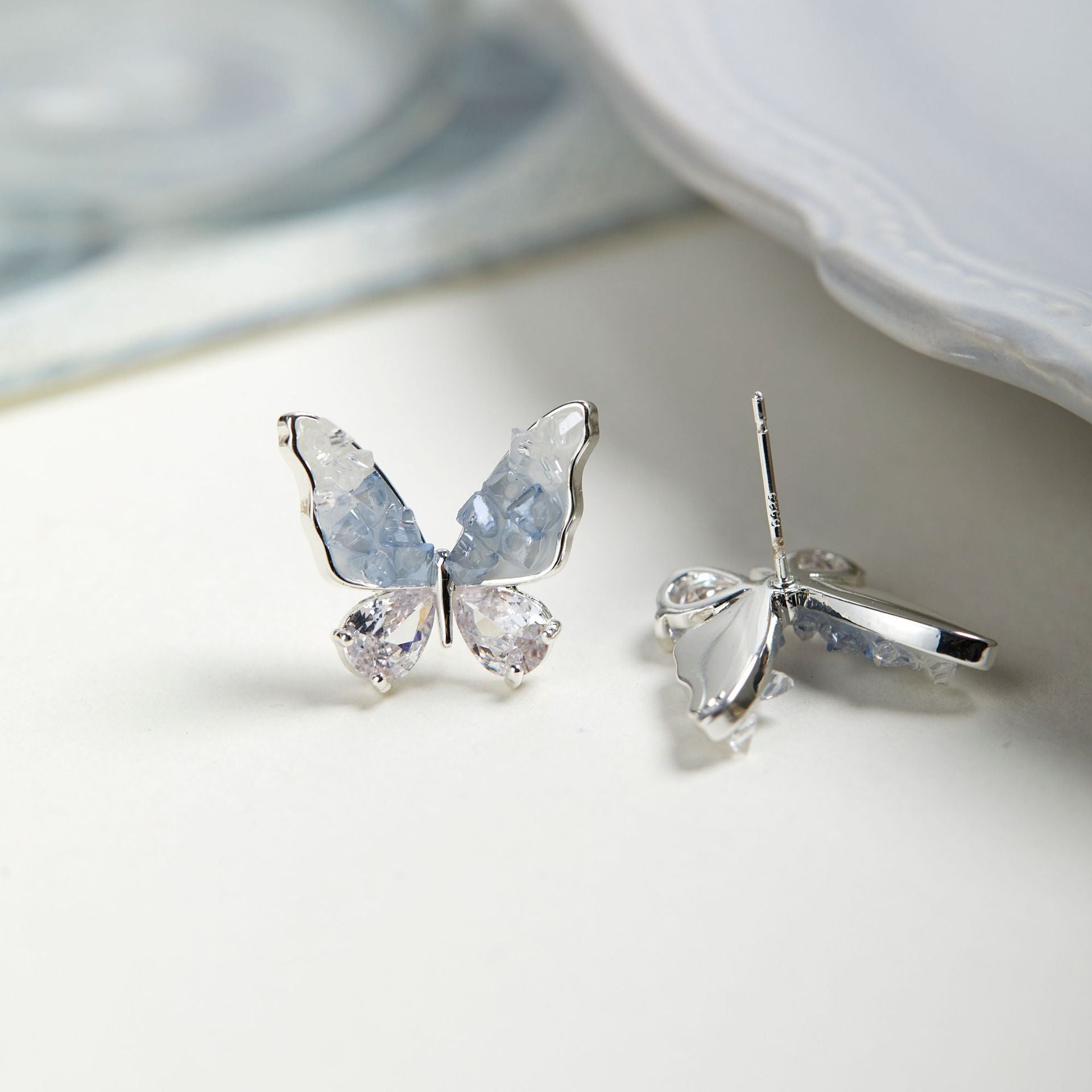 Blue Butterfly Cute Sweet Crystal Fairy Mori Earrings