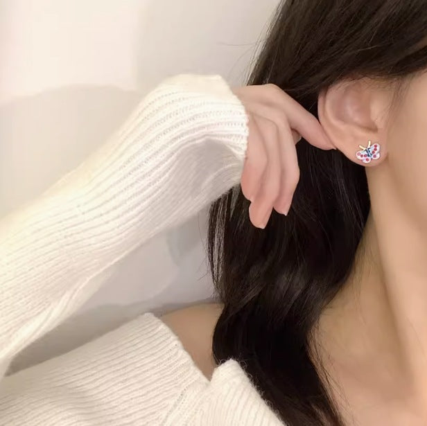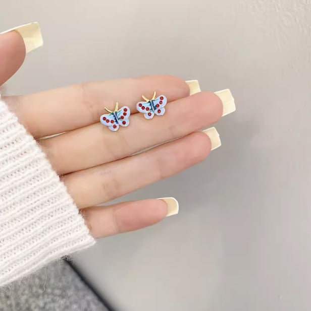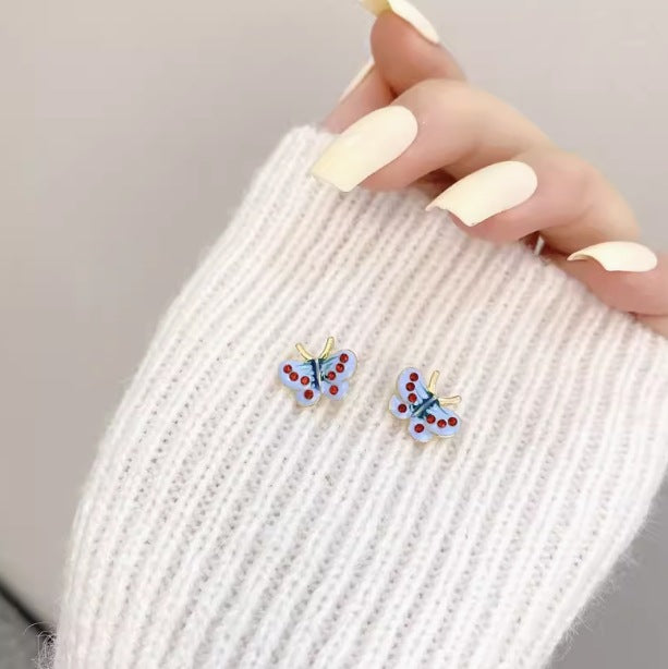 Blue Butterfly Island Cute Design Sense Niche Earrings