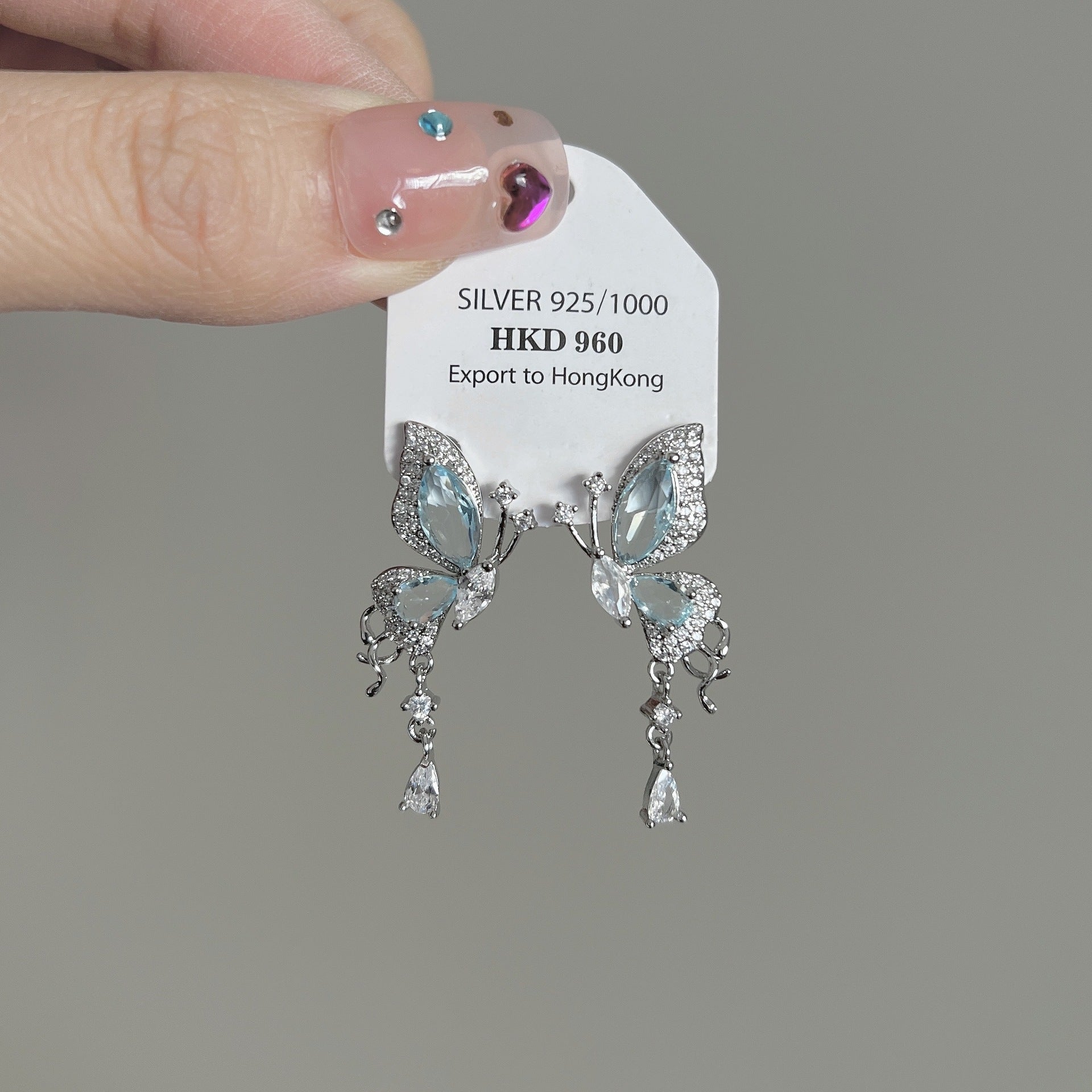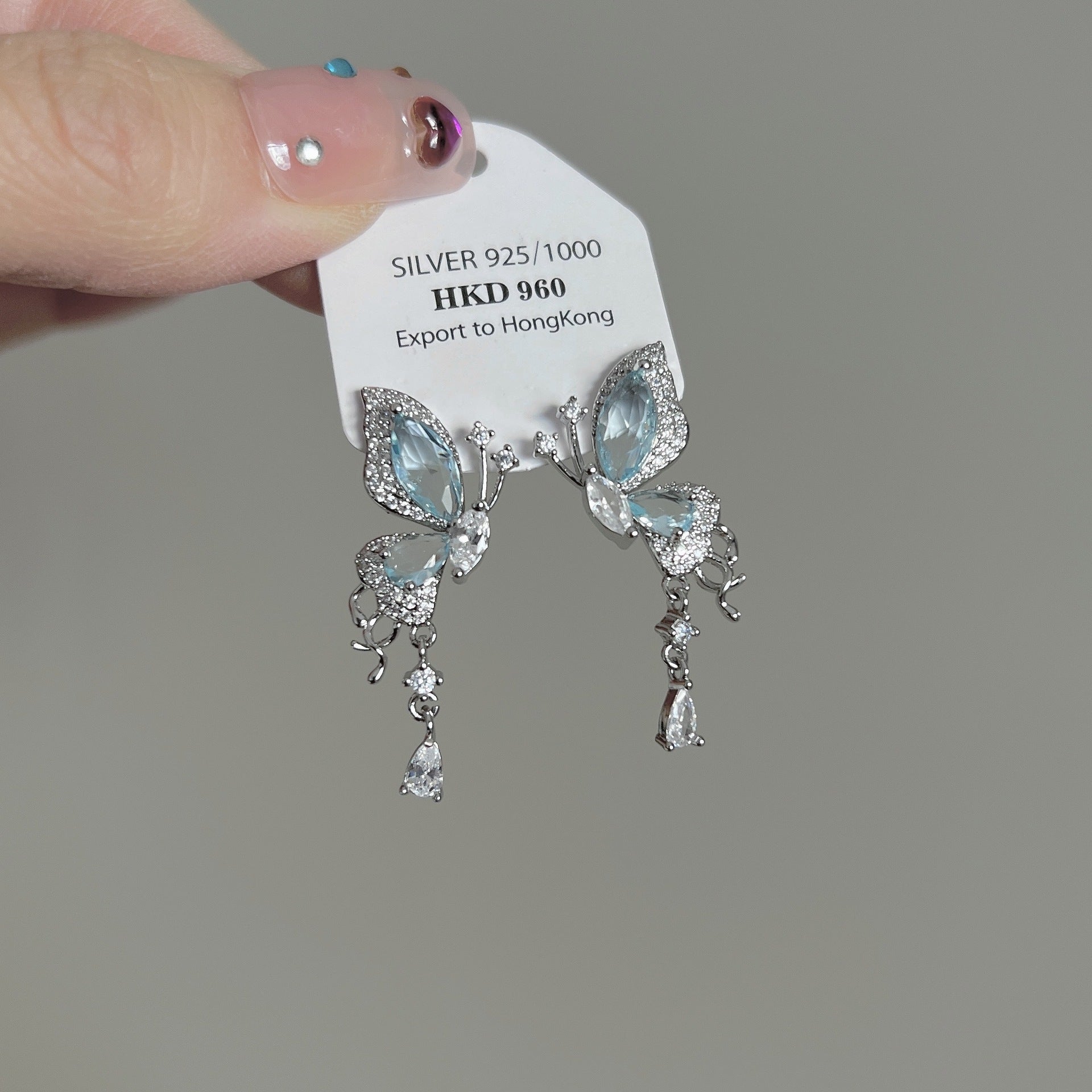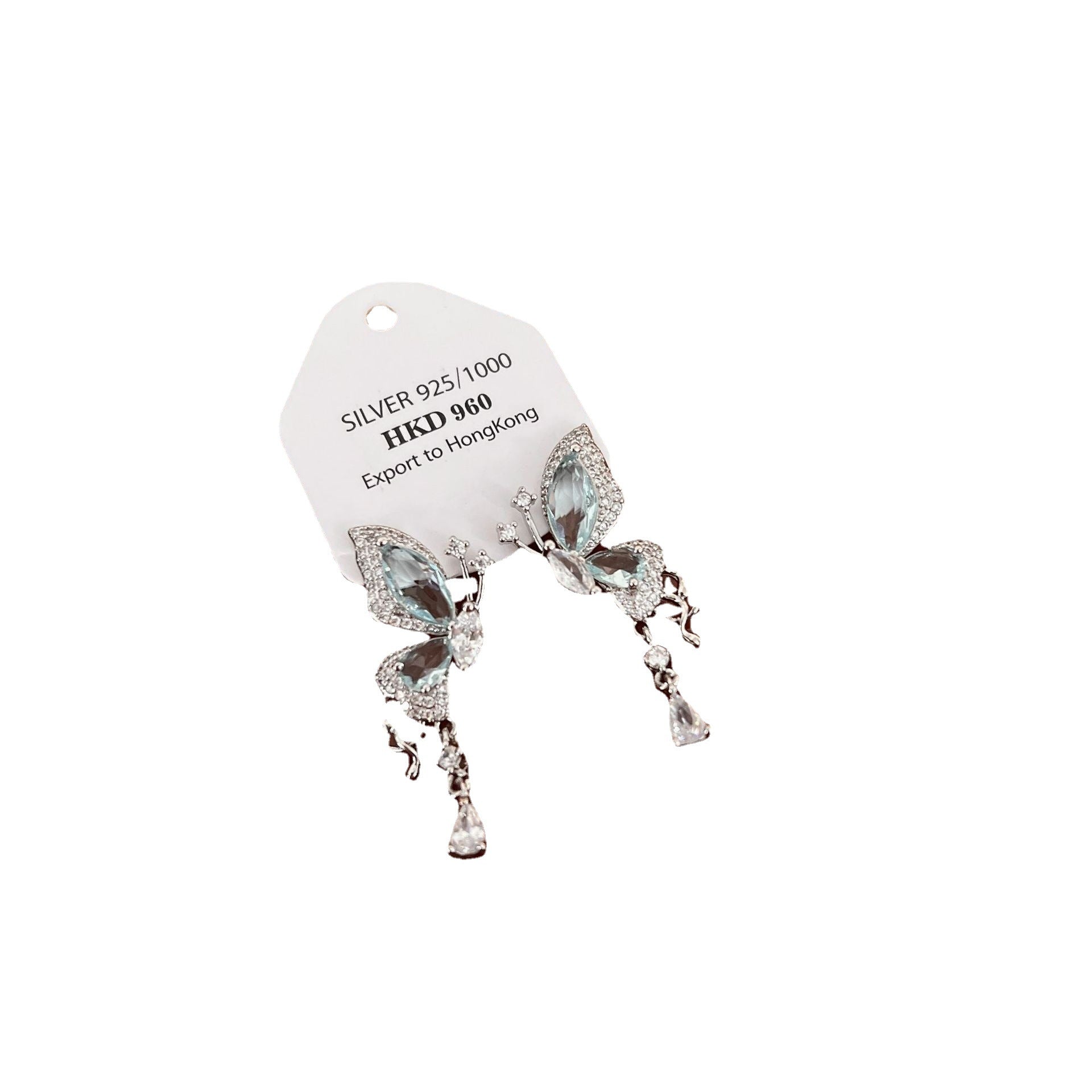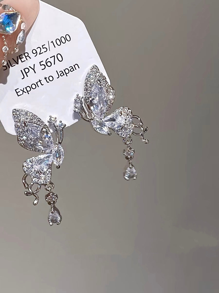 Blue Zircon Butterfly Female Light Luxury Temperament Earrings