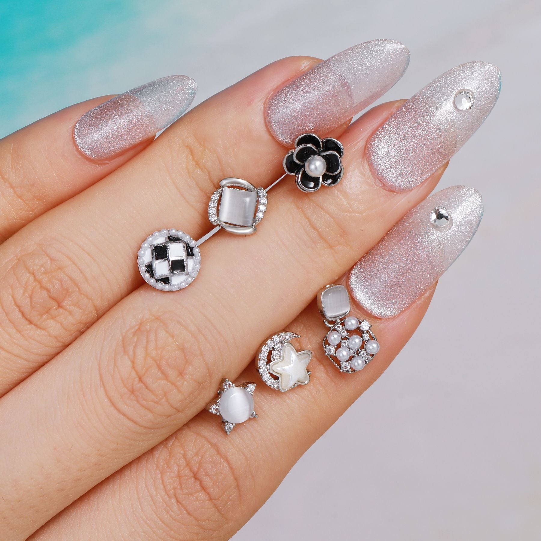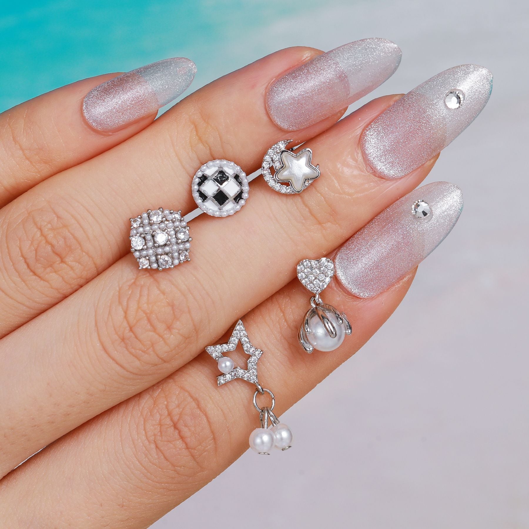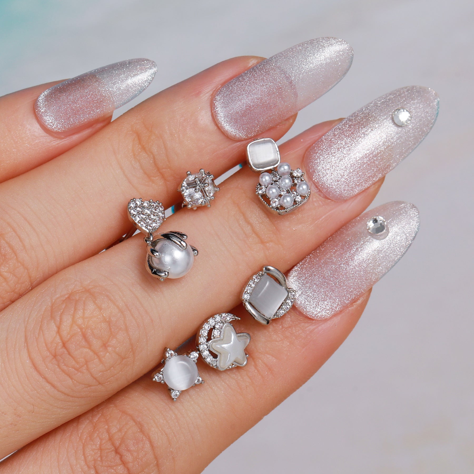 Bone Nail Micro Inlaid Zircon Stainless Steel Rod Earrings