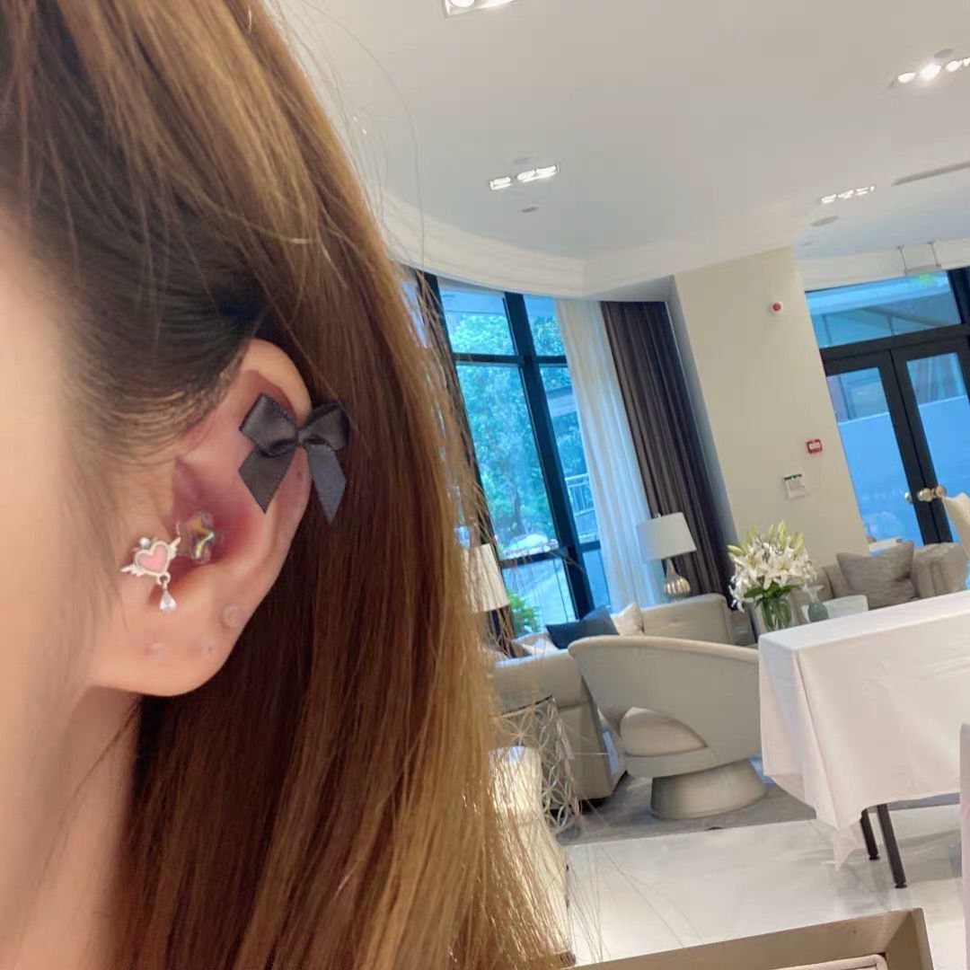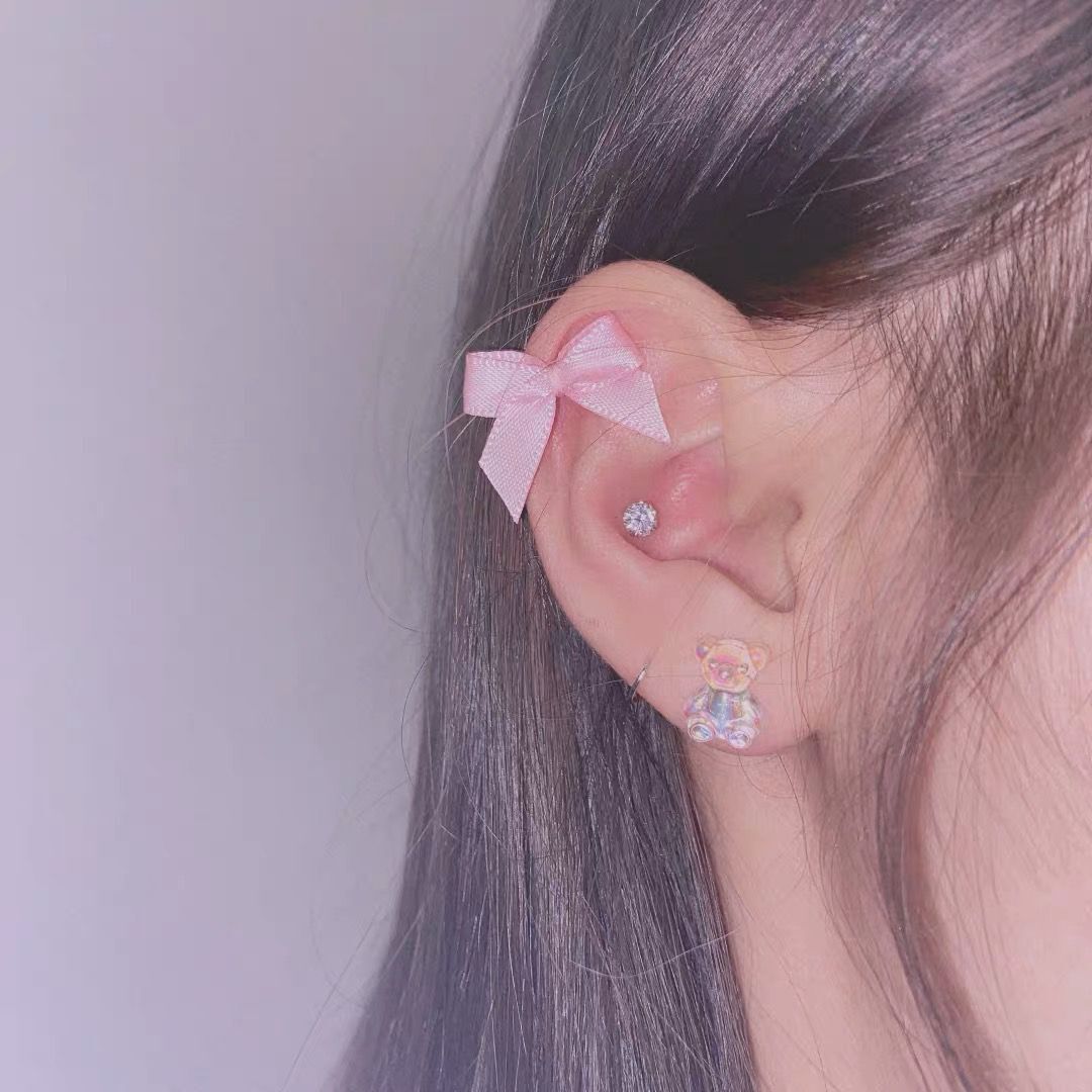 Bow Titanium Steel Ear Bone Color Rotating Twist Ball Earrings