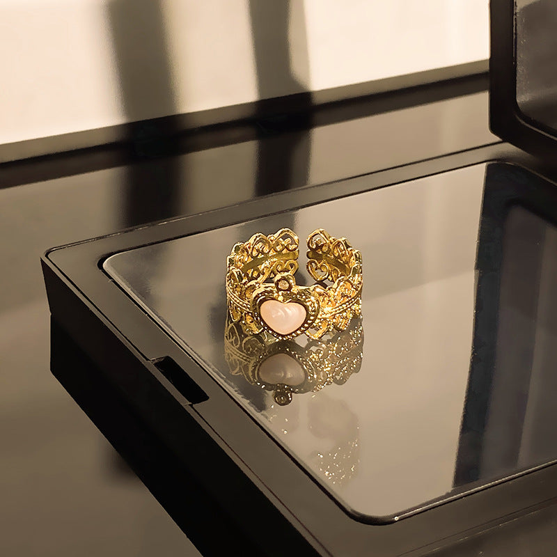 Brushed Heart-shaped Open Court Fashionable Temperamental Zircon Rings