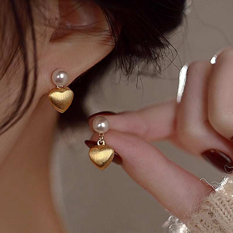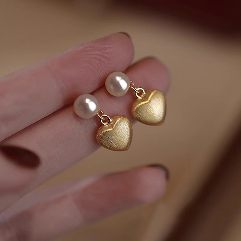 Brushed Love Freshwater Pearl Ear Design Earrings
