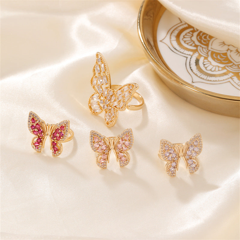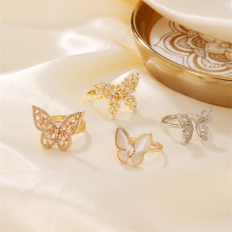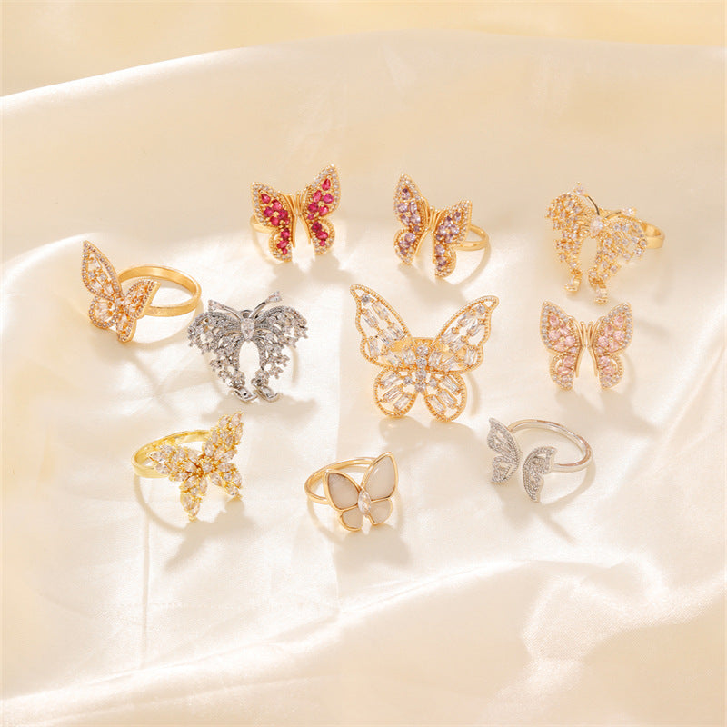Butterfly Pearl Open-end Zircon Summer Personality Rings