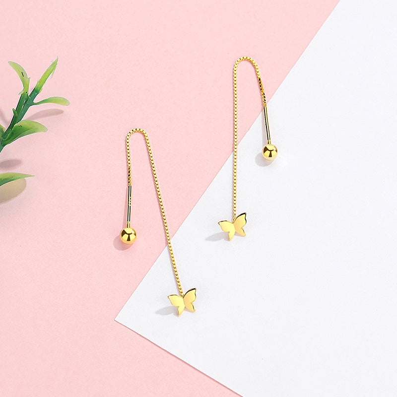 Butterfly Sweet Temperamental Minority Fashion Simple Sier Love Earrings