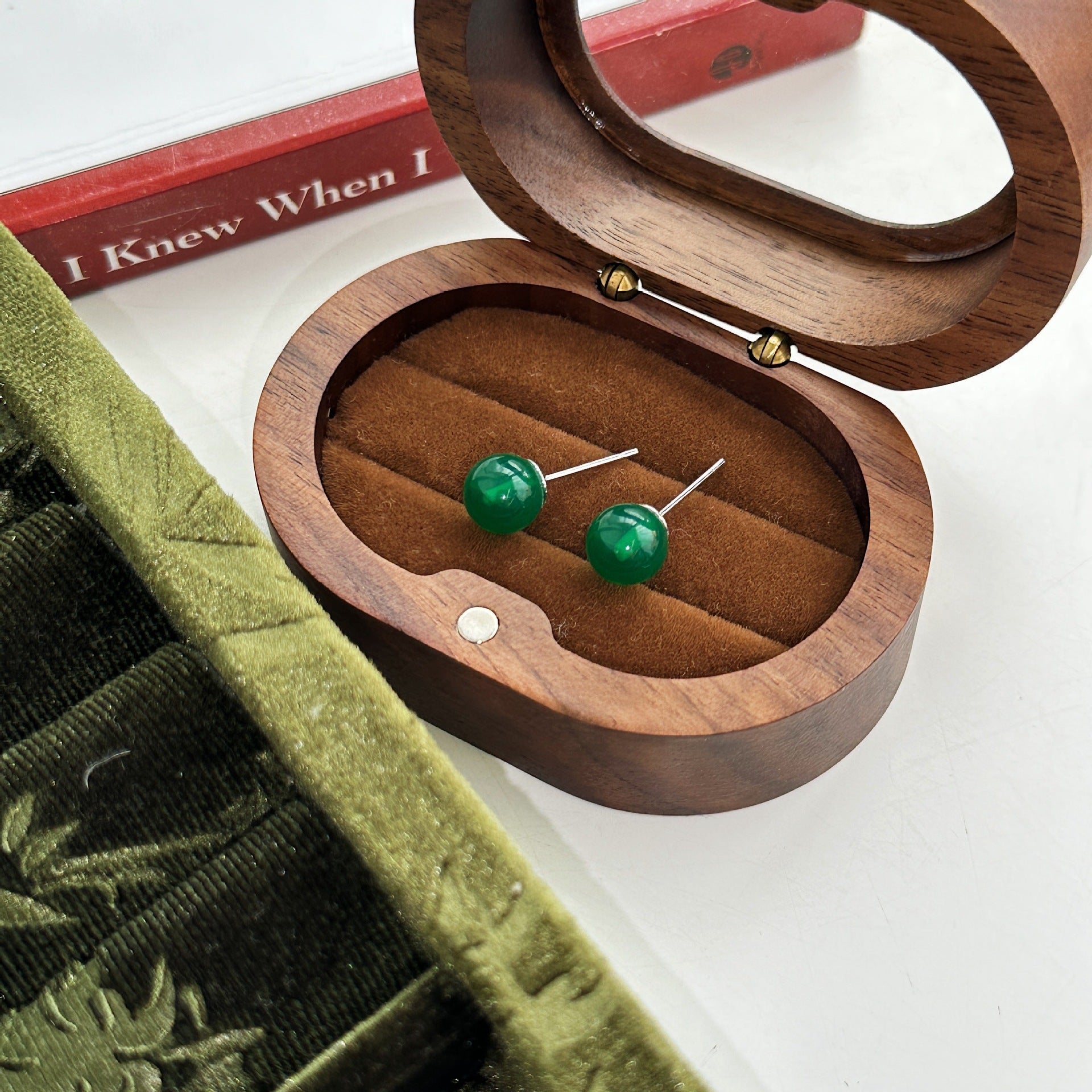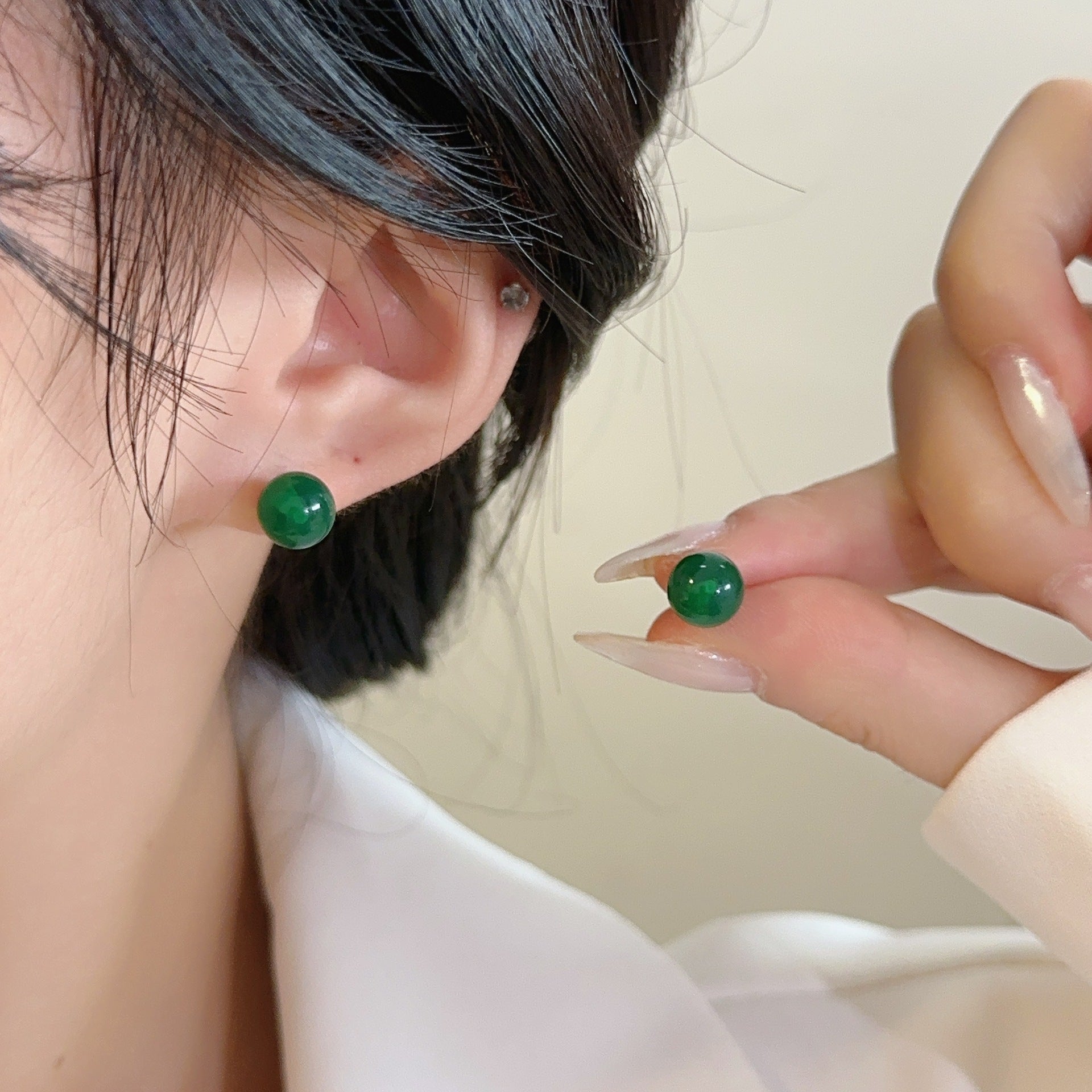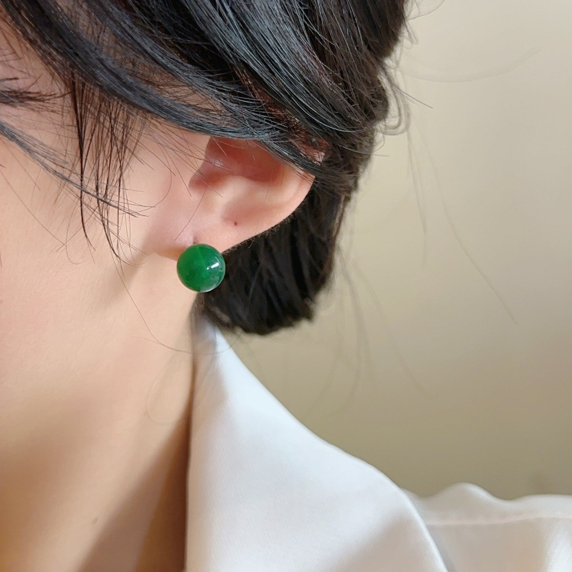 Chinese Style Imitation Jasper Green Ear Rings