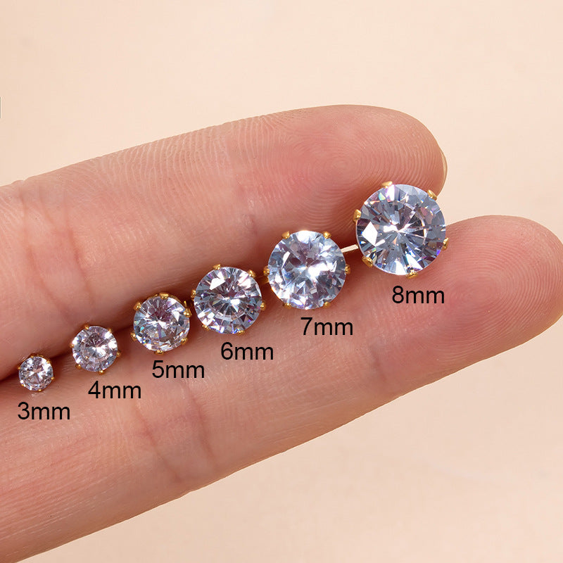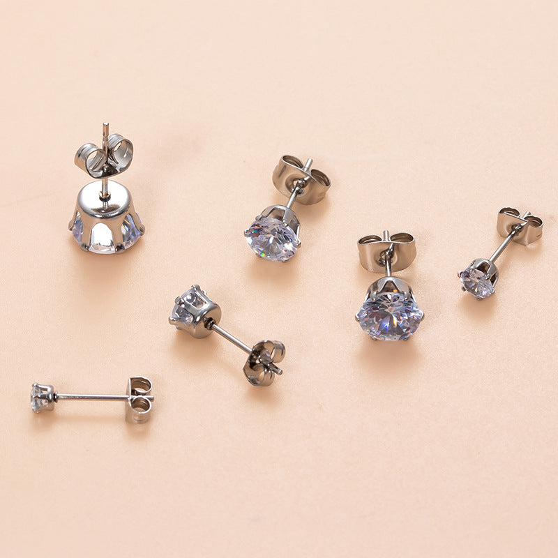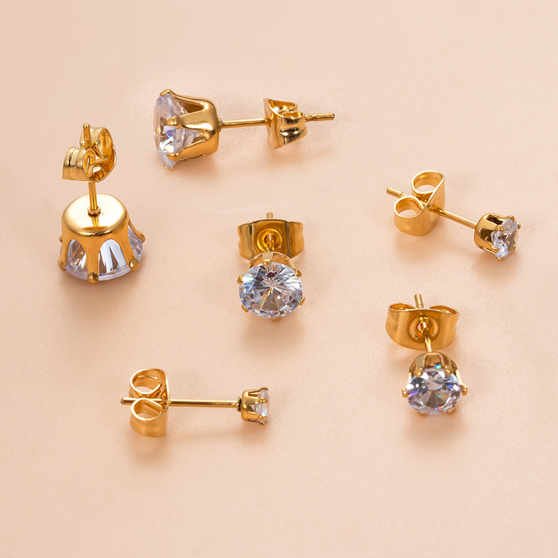 Classic Round Zircon Stainless Steel Fashion Earrings