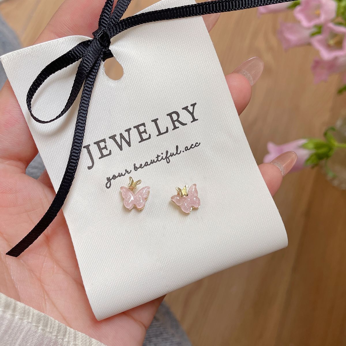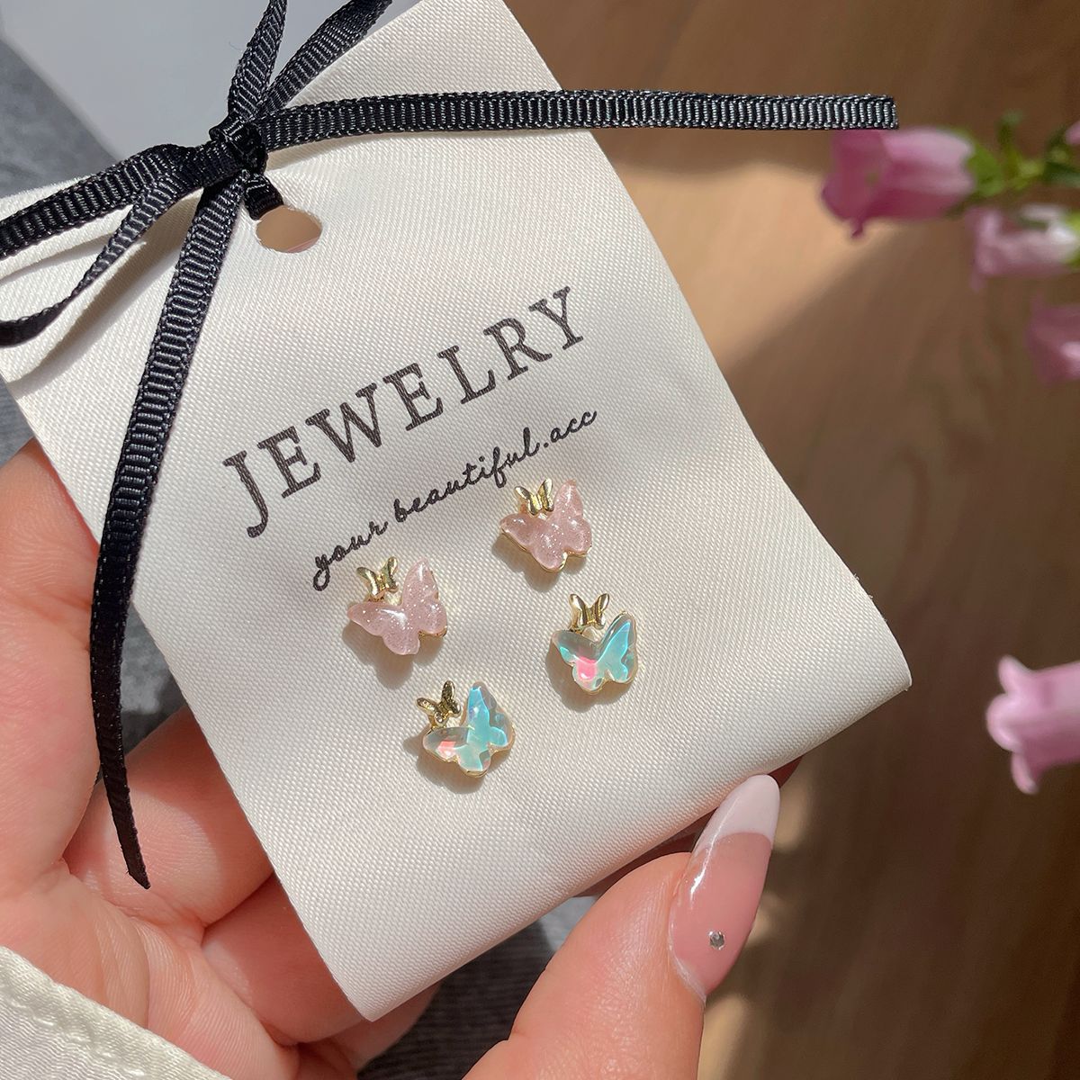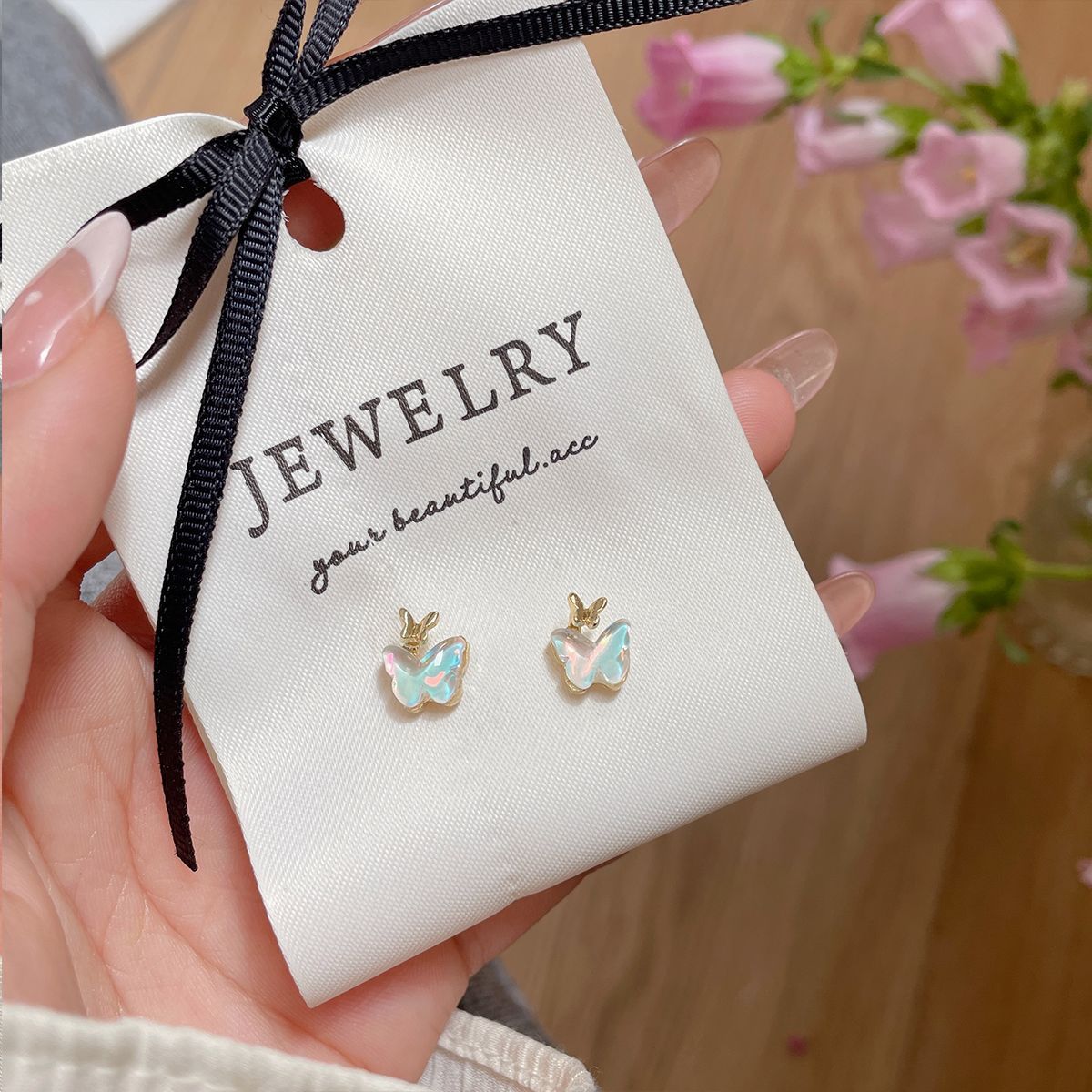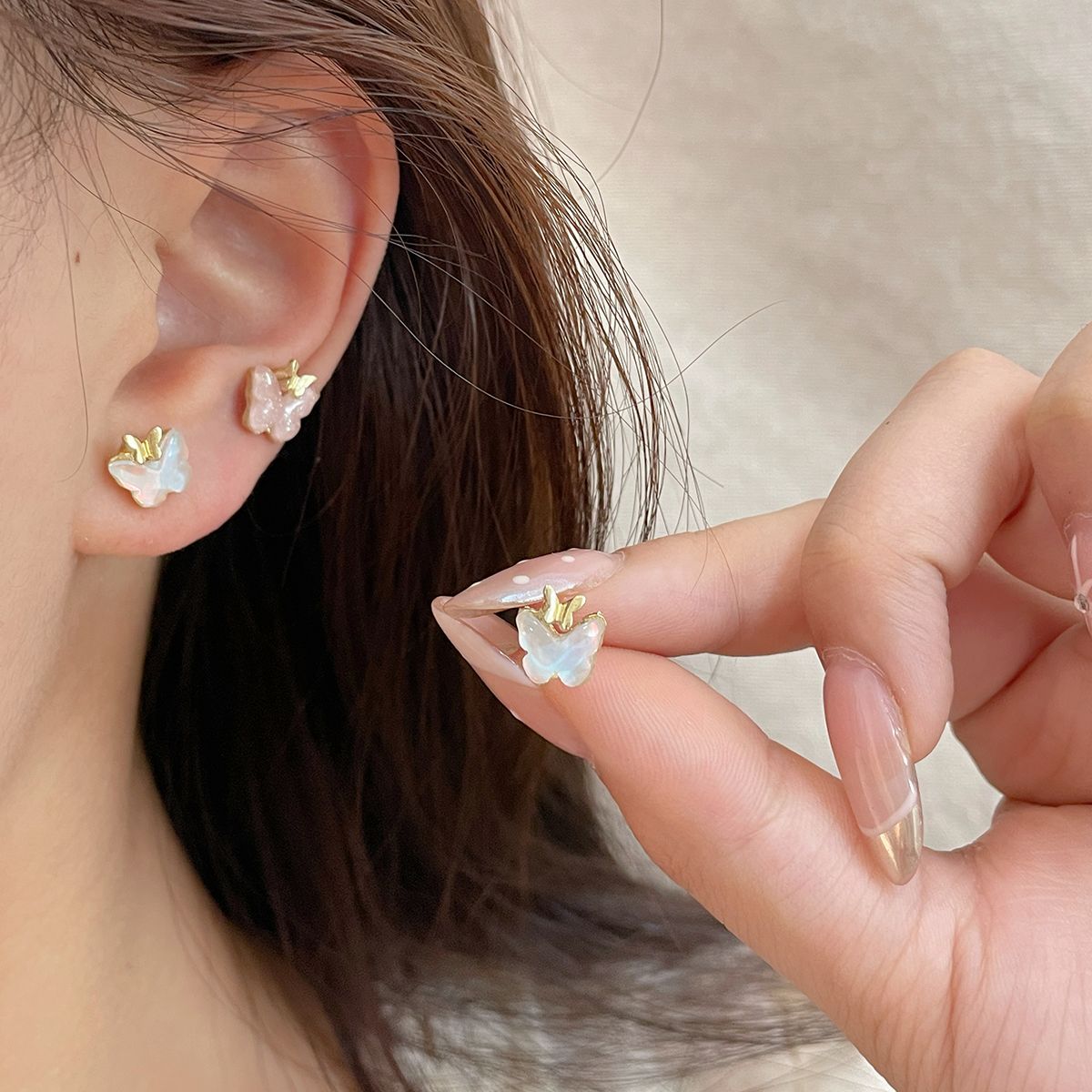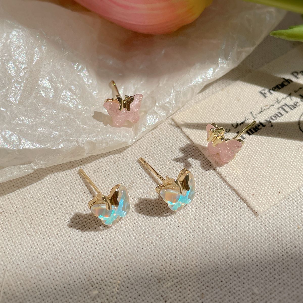 Clear Resin Colorful Butterfly Female Sier Needle Niche Earrings