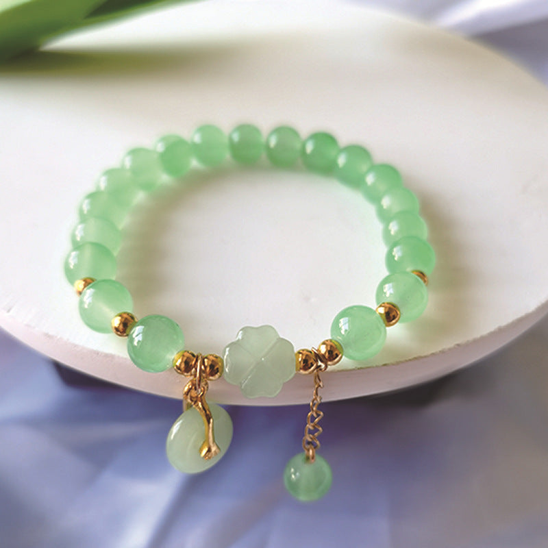 Clover Imitation Aventurine Female Girlfriends Peace Buckle Glass Live Bracelets