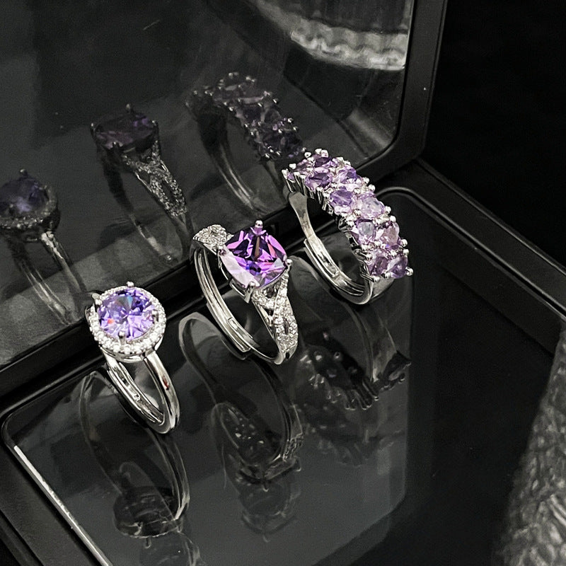 Cool Purple Diamond Open Female Cold Wind High Sense Rings
