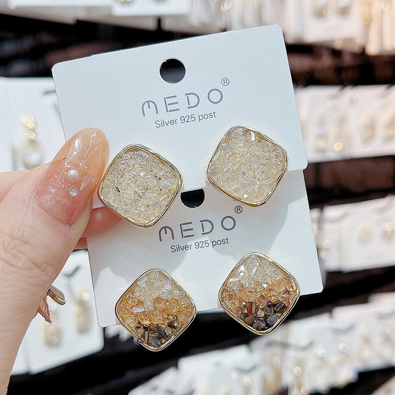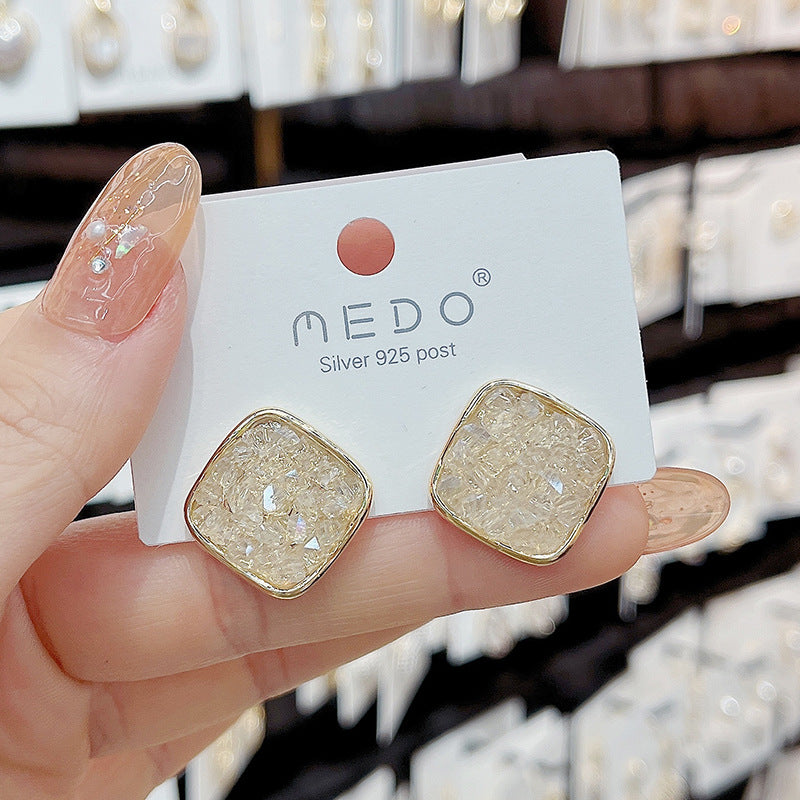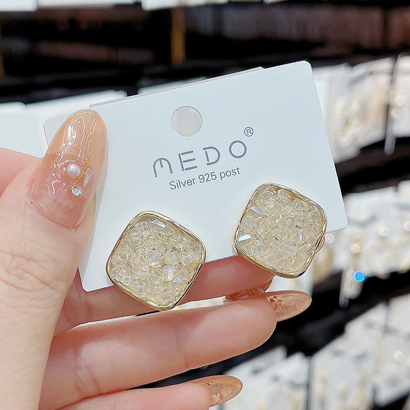 Crystal Square Design Sense Exquisite Versatile Earrings