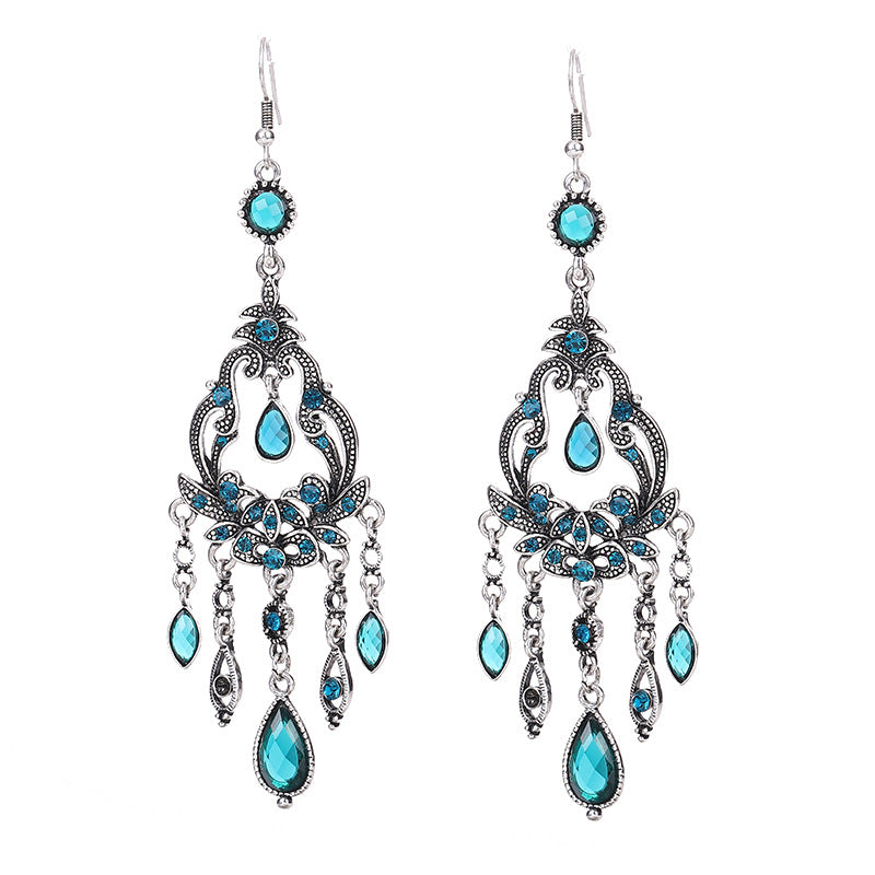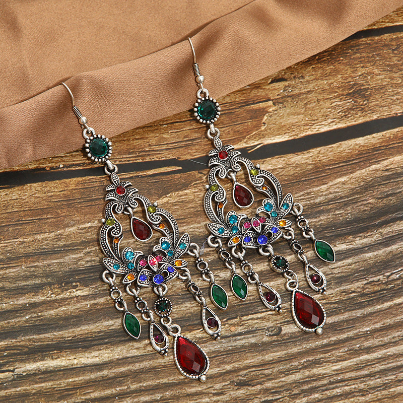 Daisy Long Chinese Style Jeweled Texture Earrings