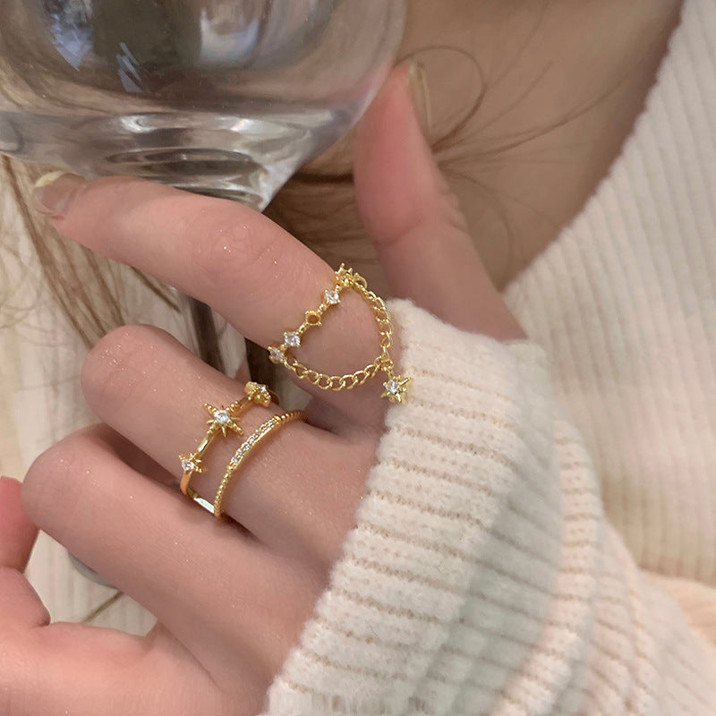 Debris Word Asterism Double Layer Index Finger Rings