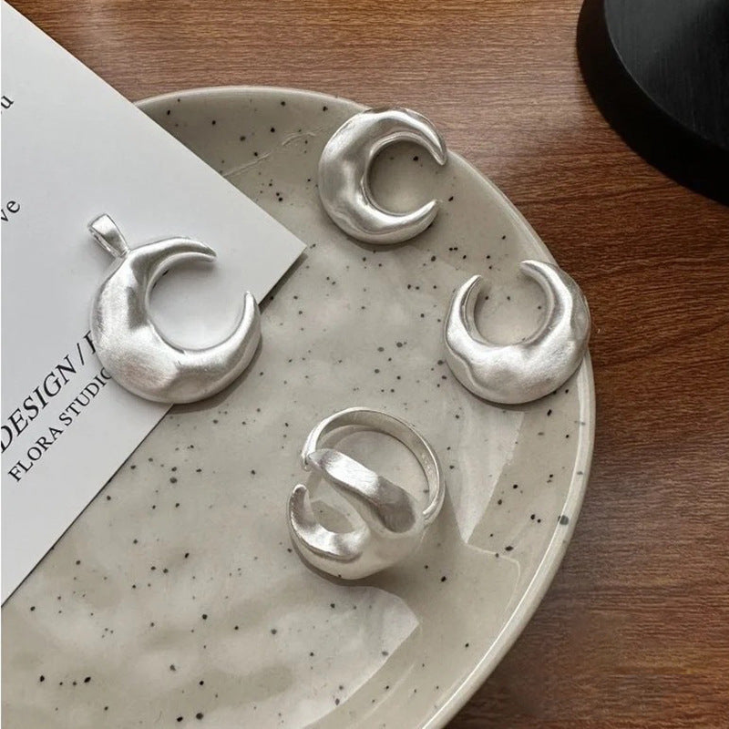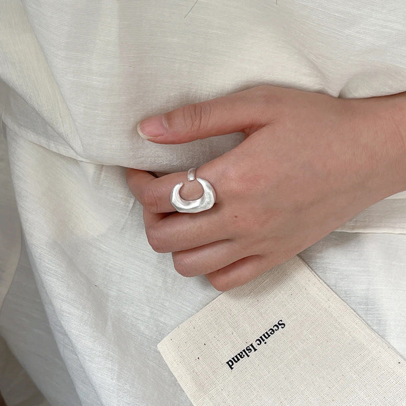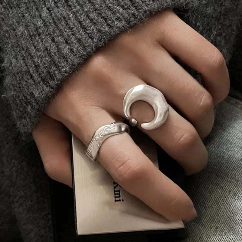 Design Moon Brushed Texture Sier High-grade Rings