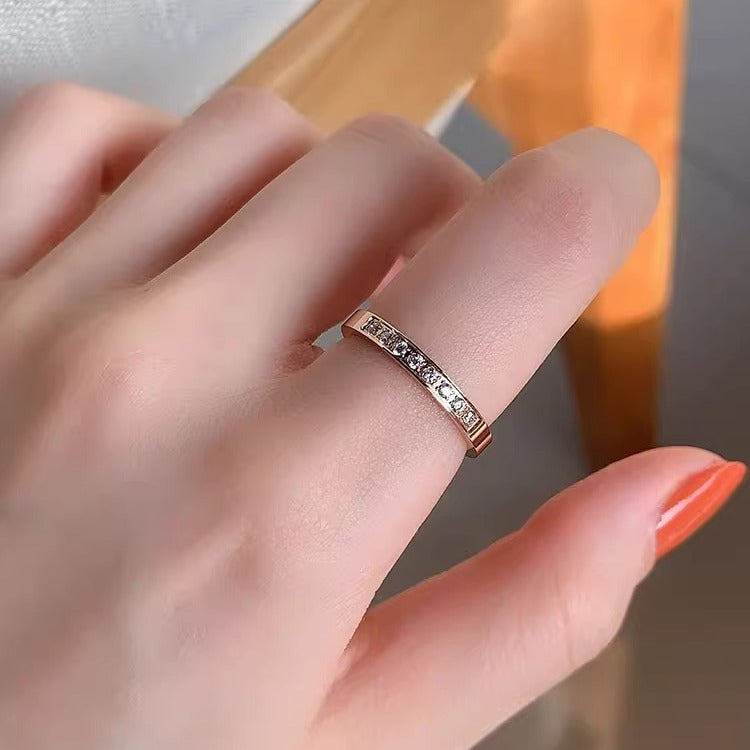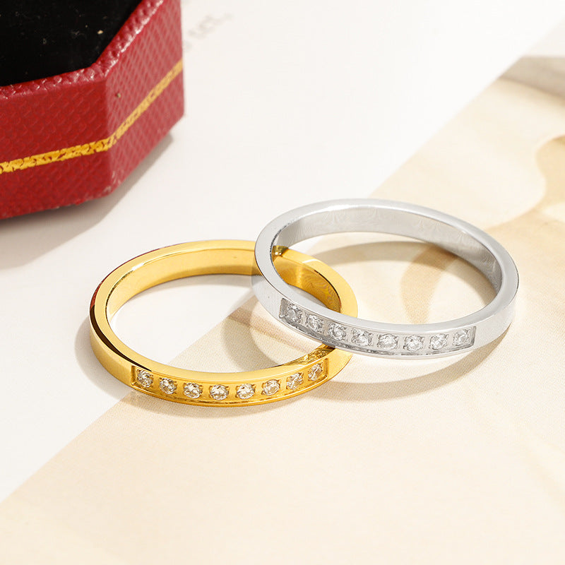Diamond Titanium Steel Gold-plated Female Cold Rings