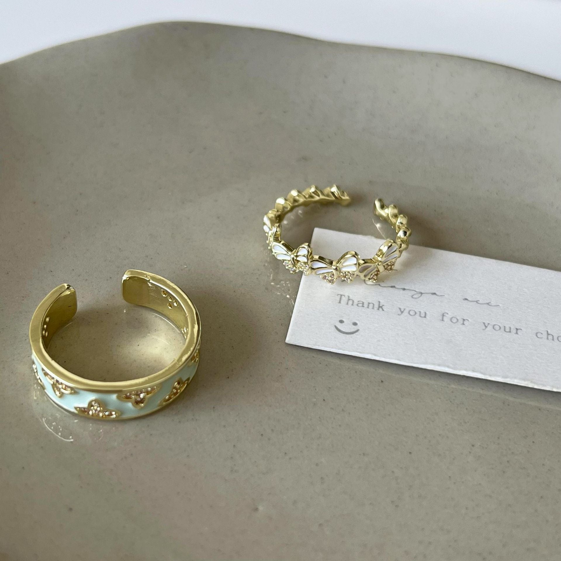 Enamel Butterfly Female Opening Adjustable Design High Sense Rings