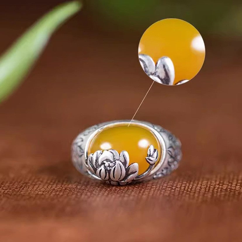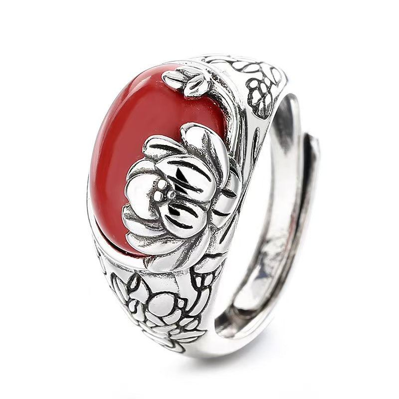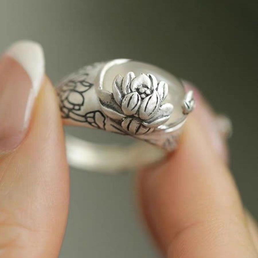 Ethnic Style Design Retro Distressed Lotus Index Finger Rings