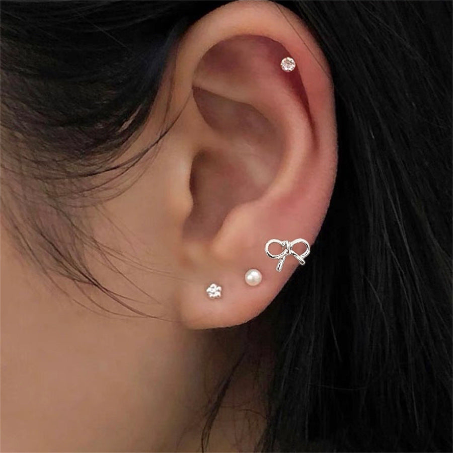 Fashion Simple Frosty Style Asymmetric Bow Volkswagen Refined Zircon Earrings
