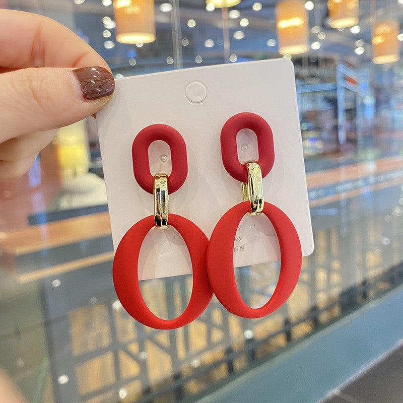 Fashionable Flocking High-grade Niche Bow Red Earrings