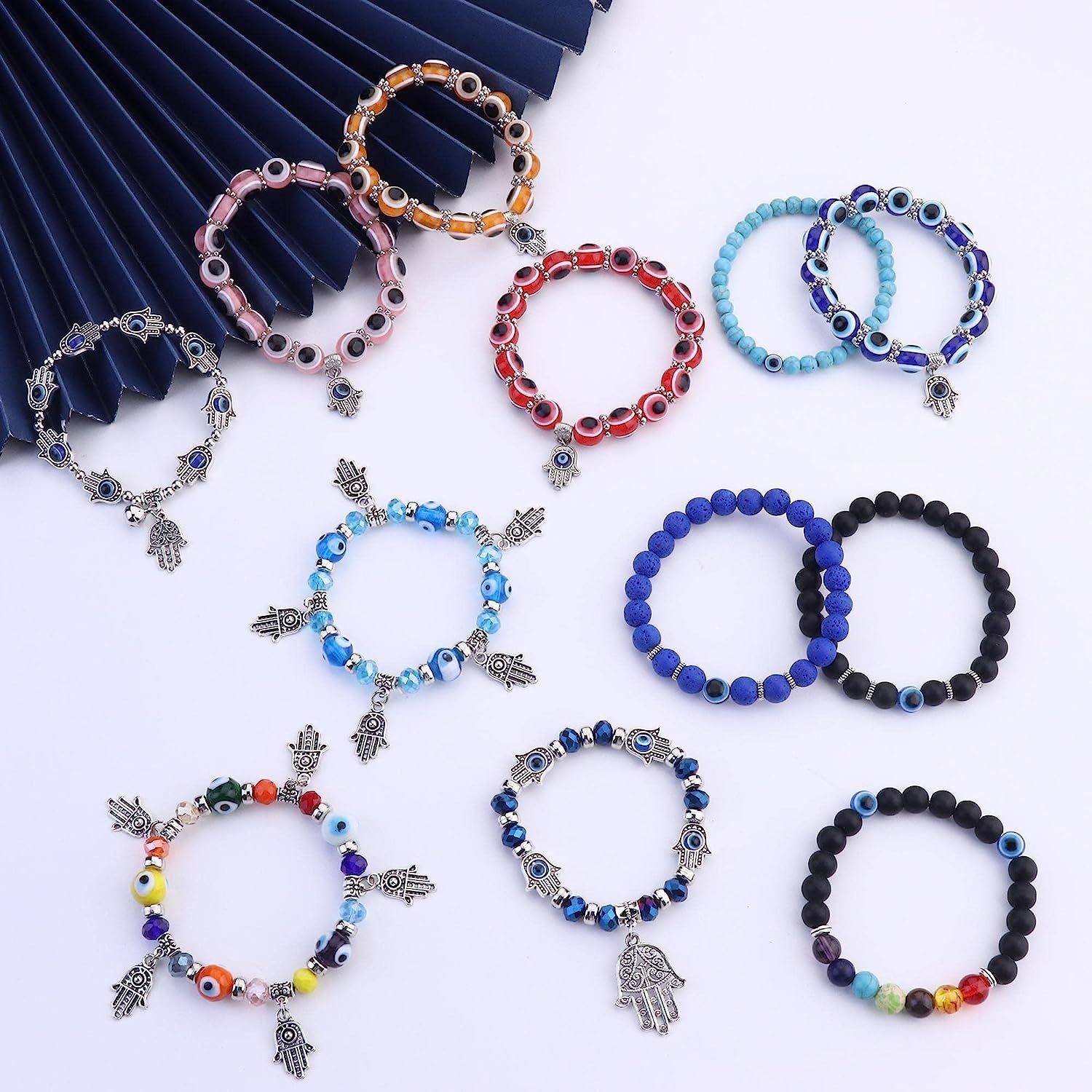 Fatima Palm Beaded Resin Glaze Blue Bracelets