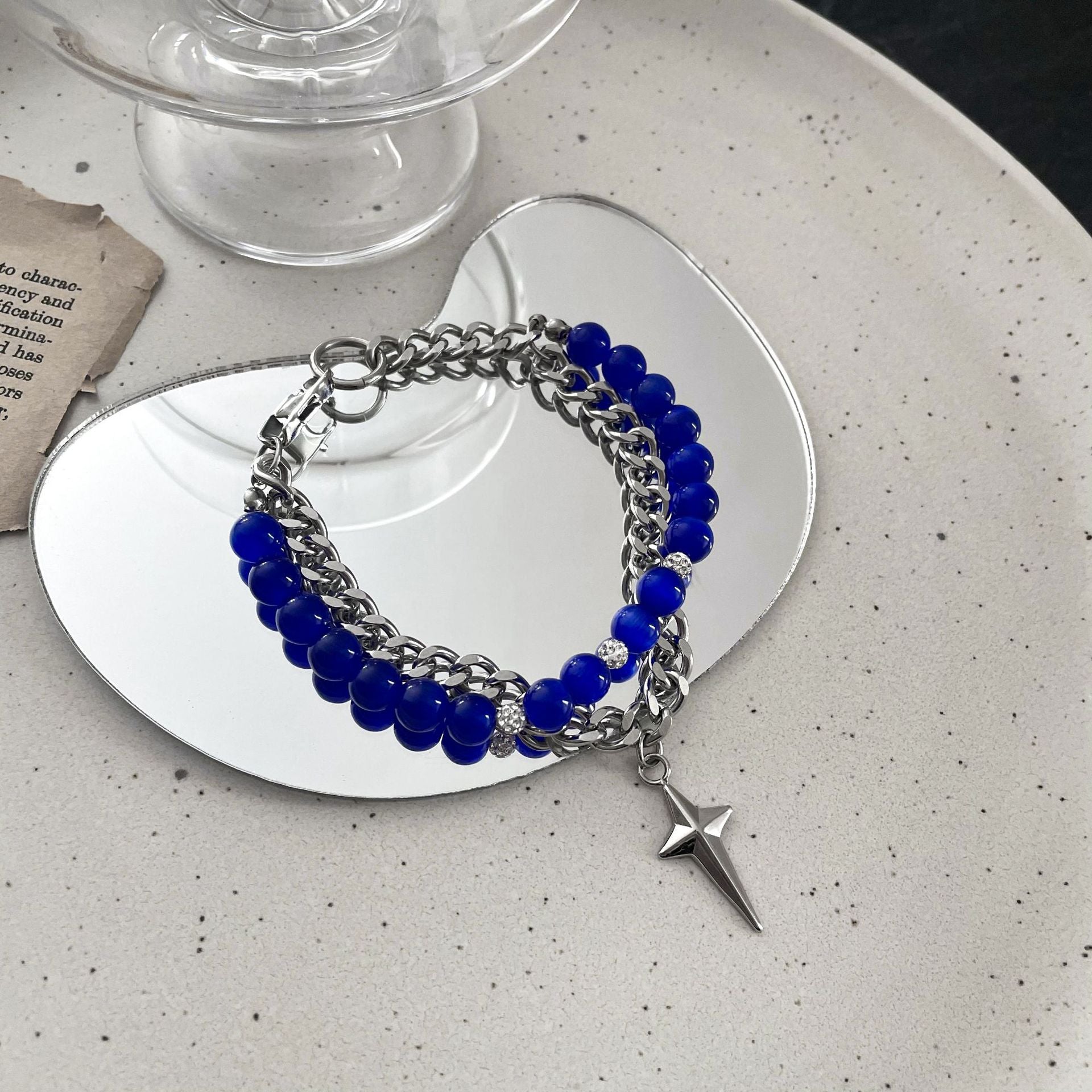 Four Stars Couple Stitching Klein Blue White Opal Cuban Bracelets