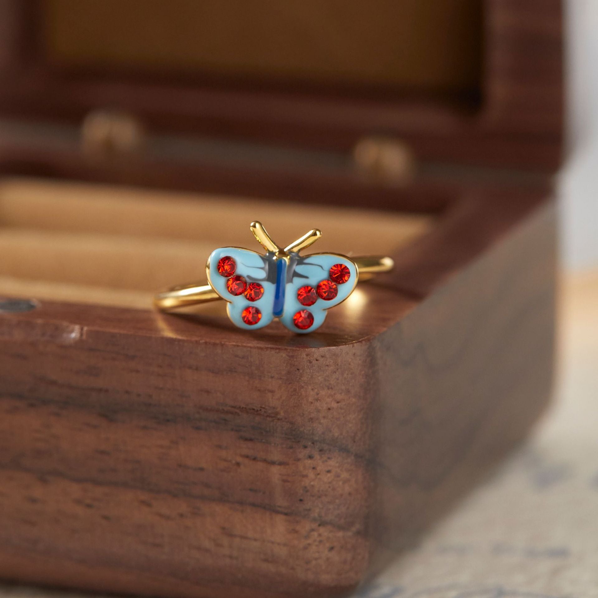 French Retro Blue Red Loving Heart Rings