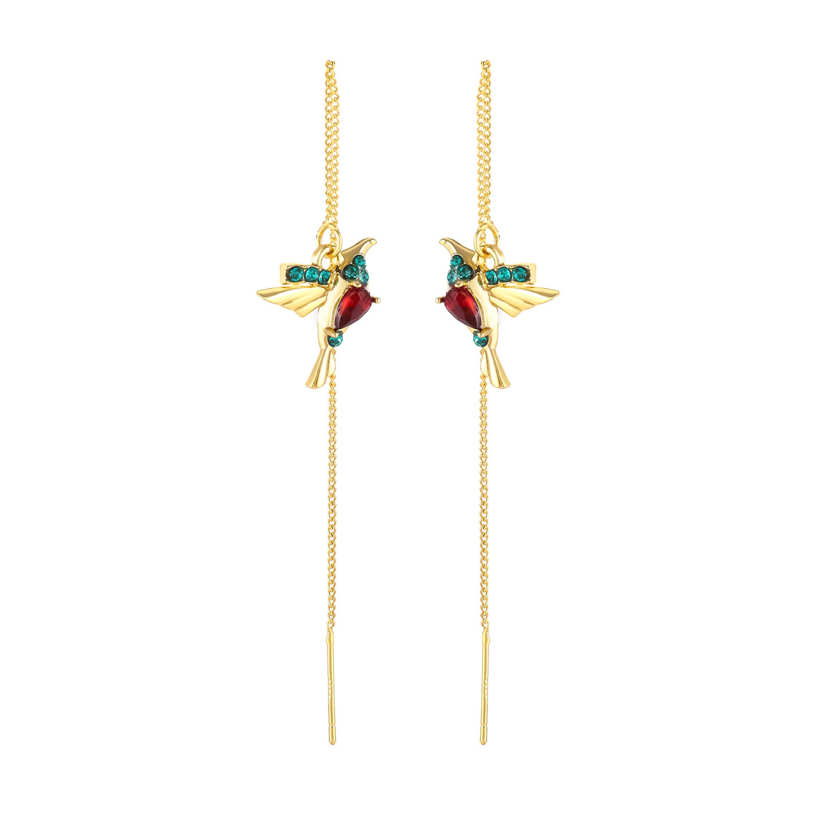 Glamorous Versatile Bird Red Blue Diamond Earrings