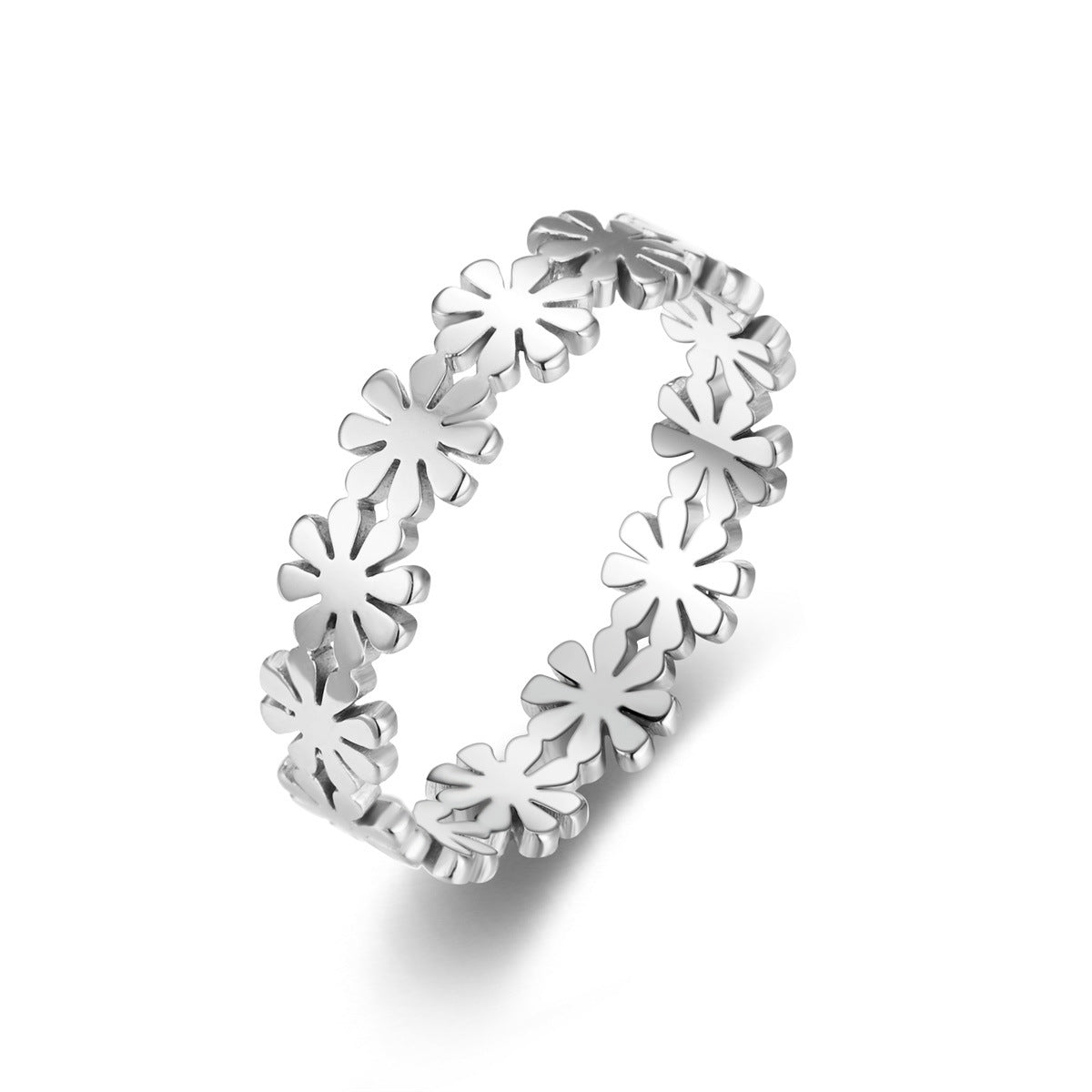 Gold Titanium Steel Hexapetalous Flowers Female Rings