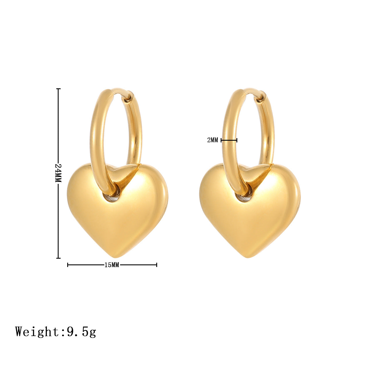 Golden Love Heart-shaped Fashion Style Female Earrings