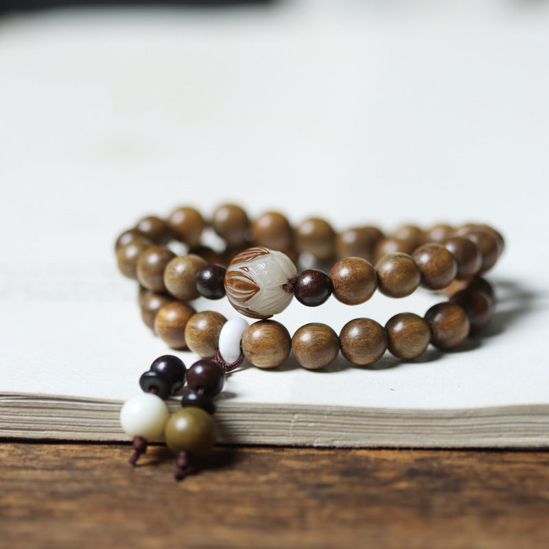 Green Sandalwood Beads Bodhi Root Carved Lotus Bracelets