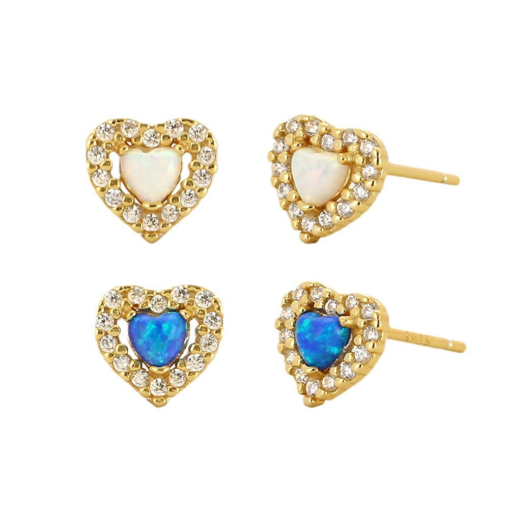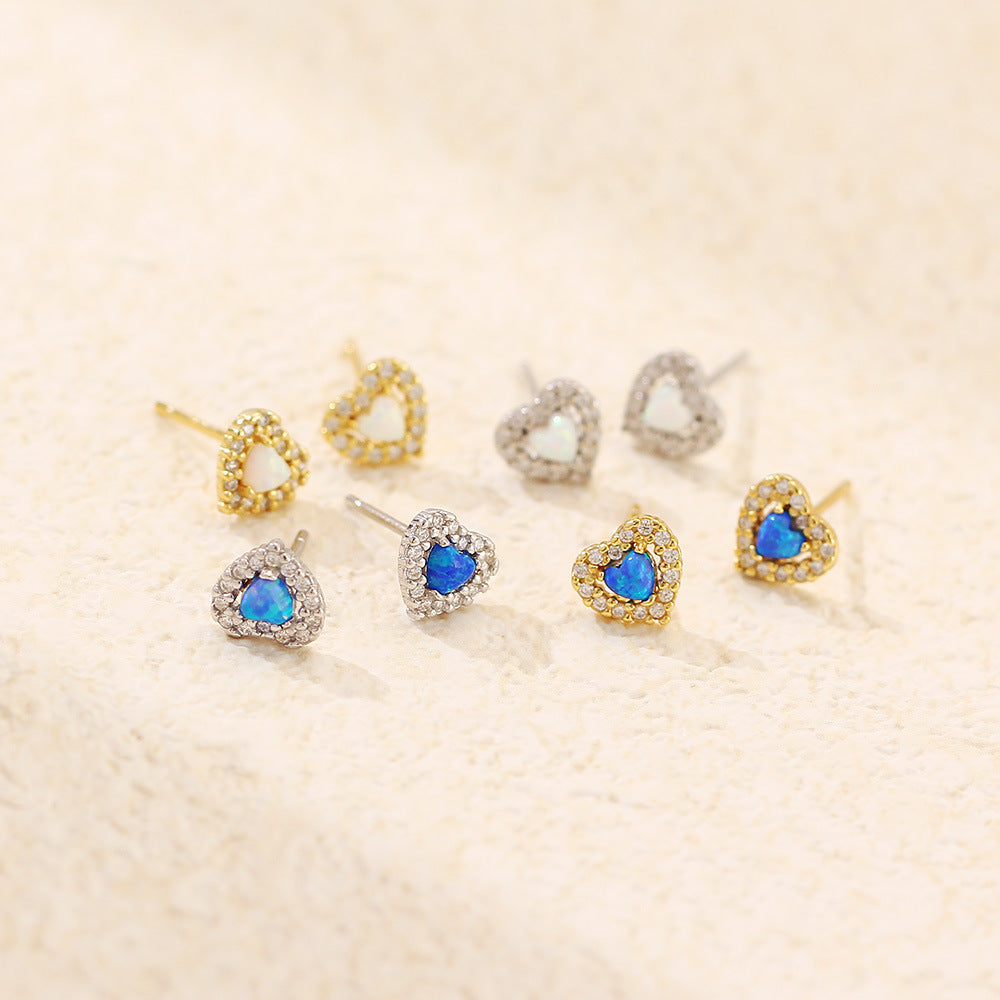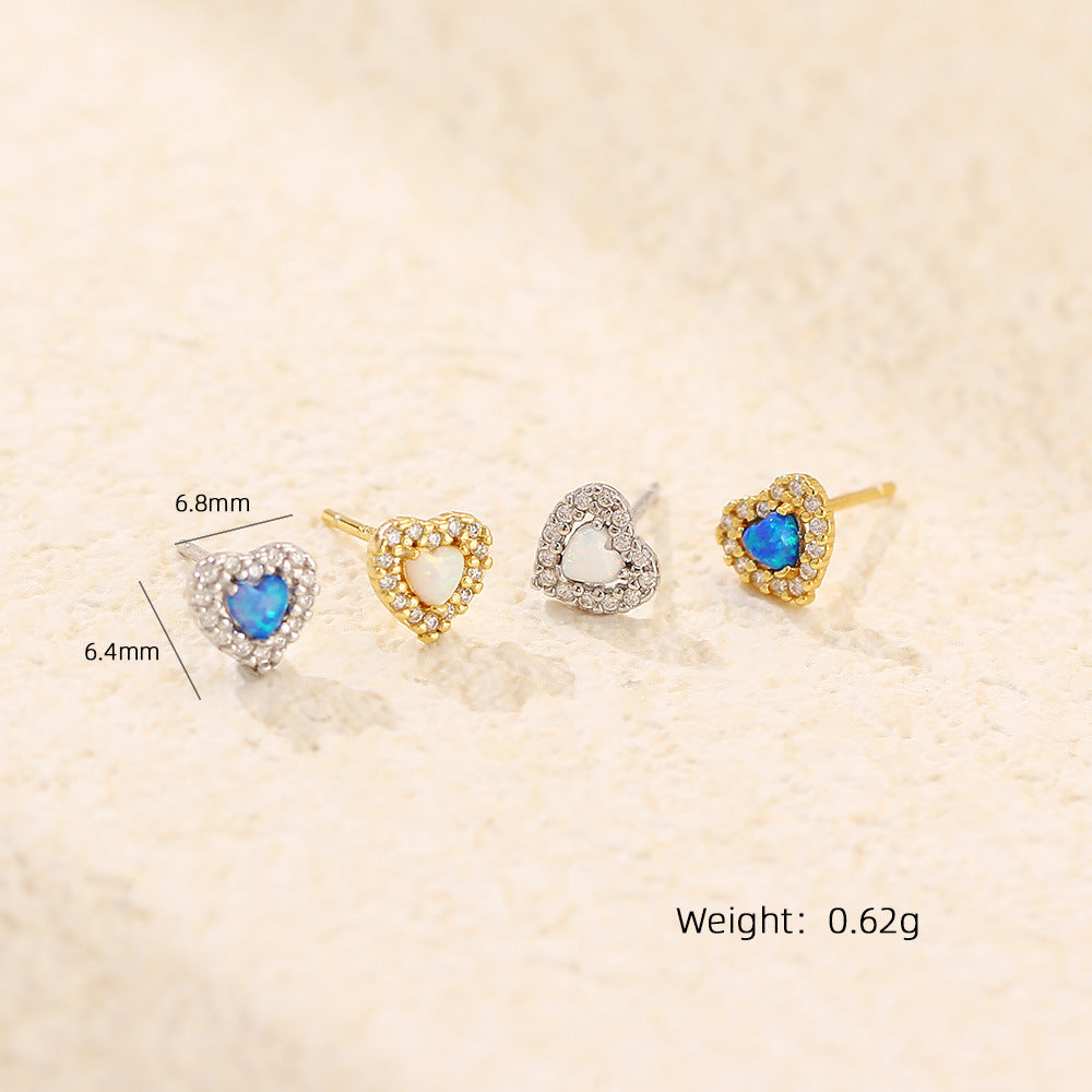 Heart-shaped Sier Synthetic Opal Diamond Peach Earrings