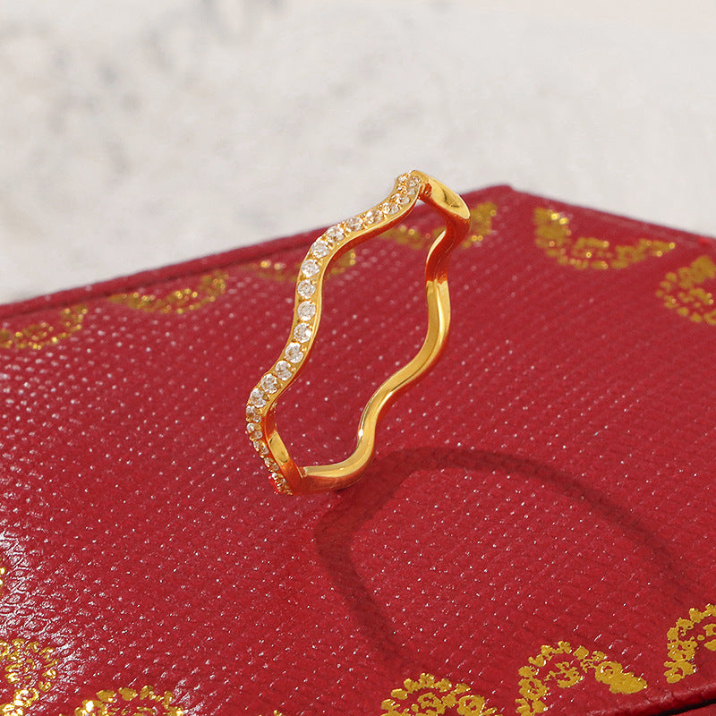 High-grade Micro Rhinestone Wave Female Titanium Rings