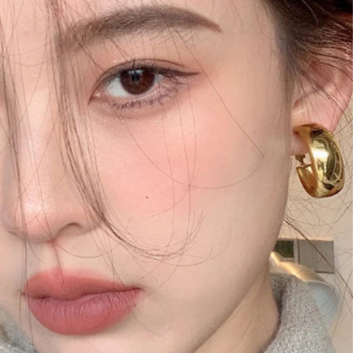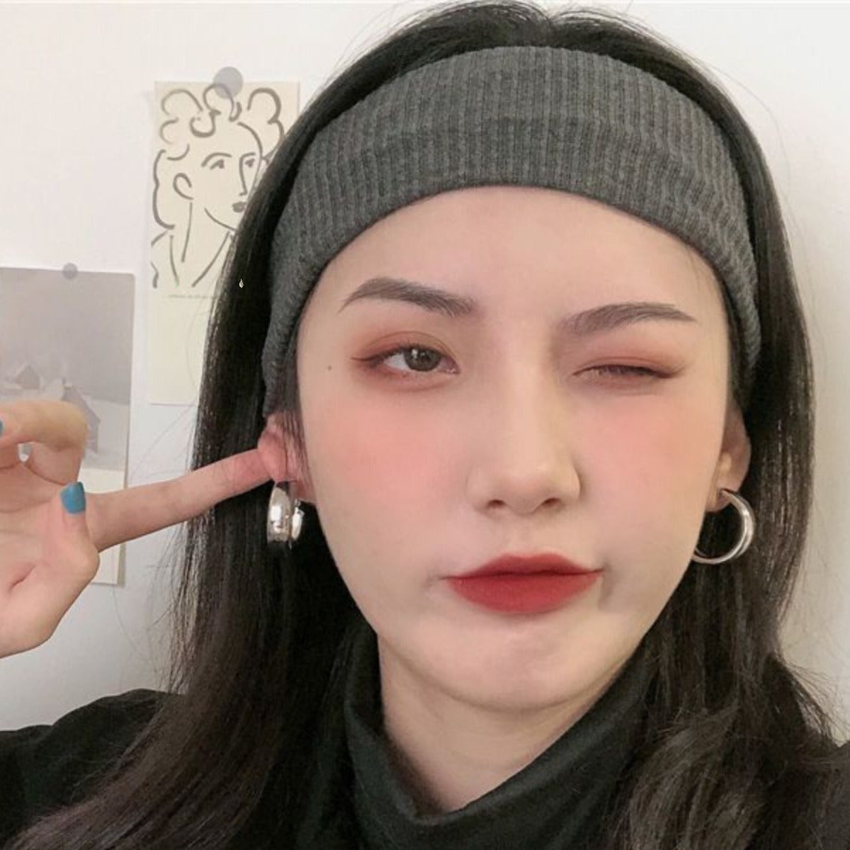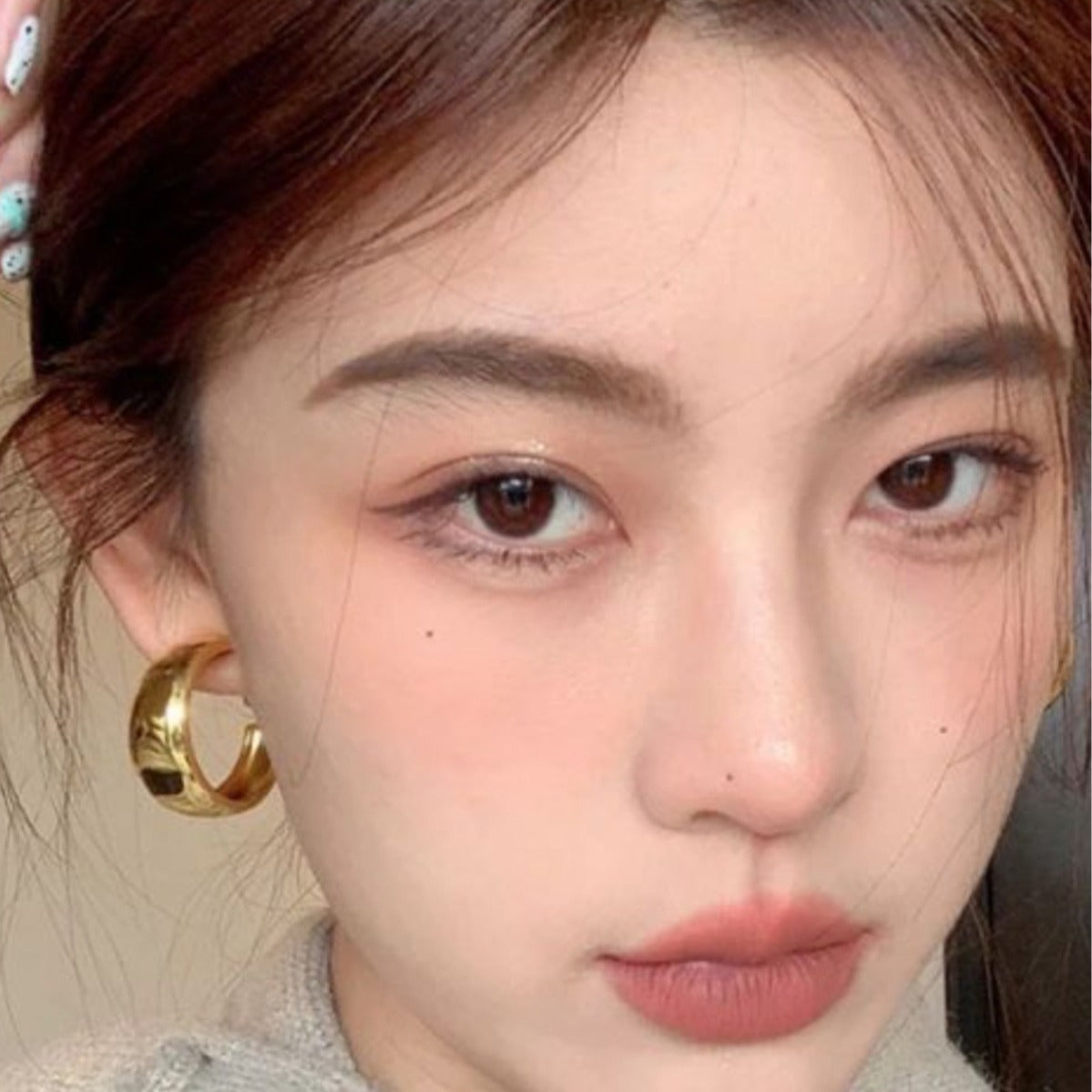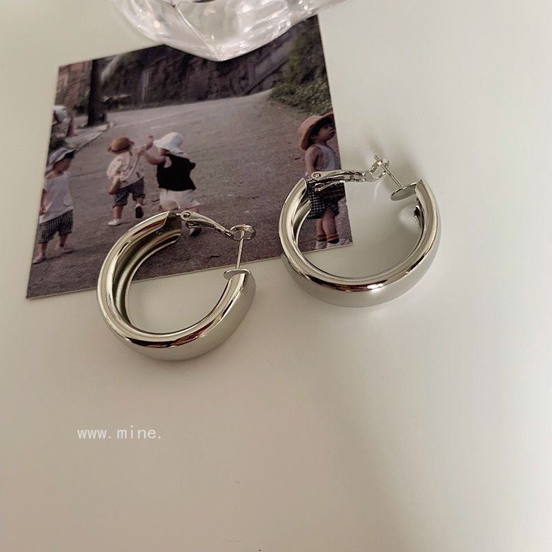 High-grade Round Metal Texture Sier Pin Eardrops Earrings