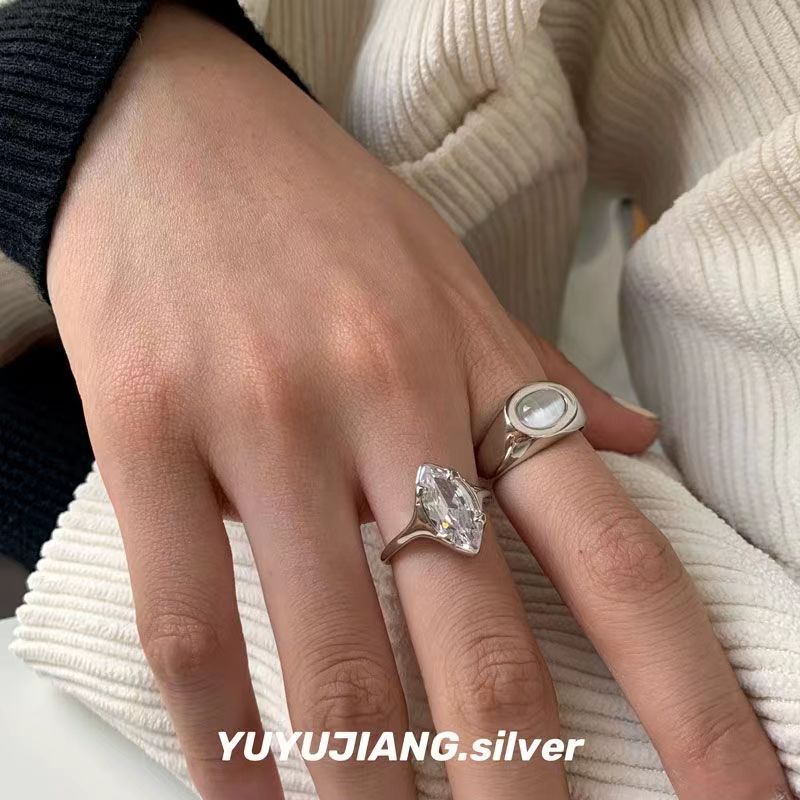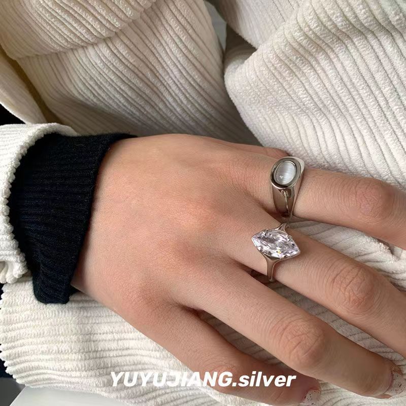 Homemade Sier-plated Opal Minimalist Light Luxury Rings