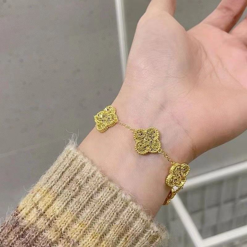 Honeycomb Pork Belly Clover Alluvial Gold Bracelets