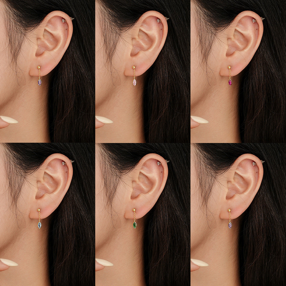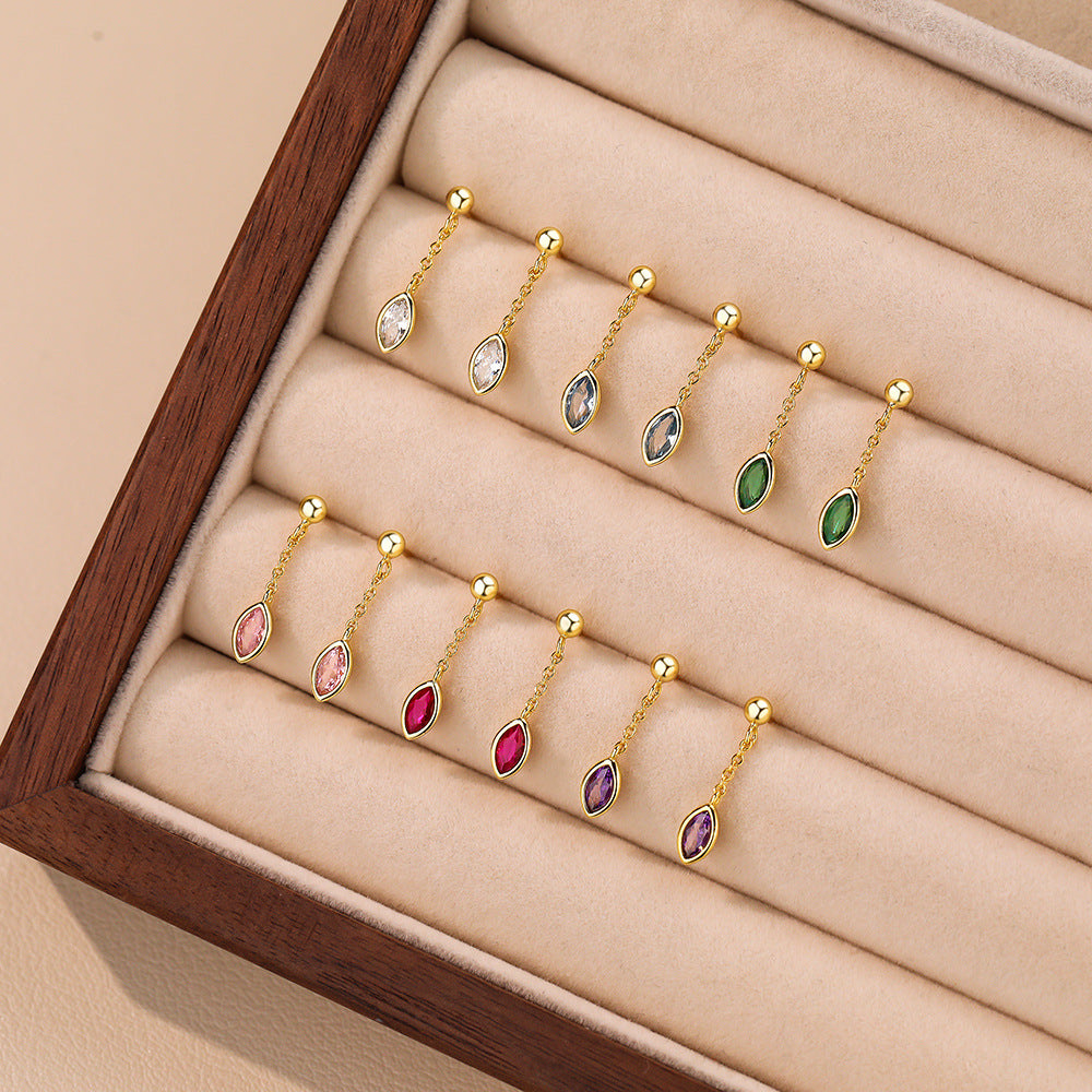 Inlaid Color Zirconium Water Drop Ear Female Tassel Simple Earrings