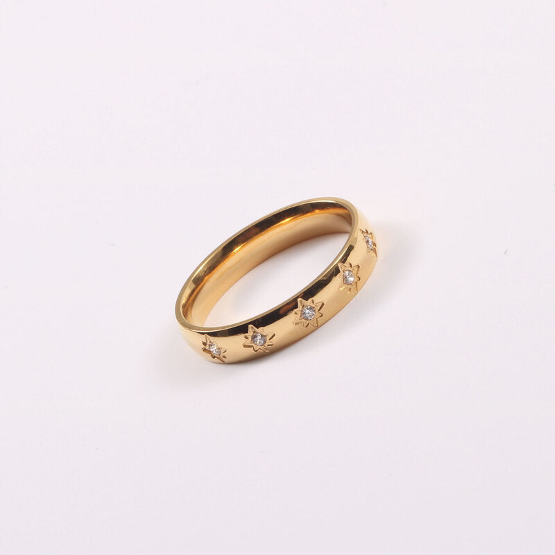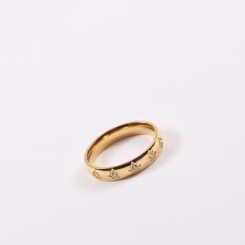 Inlaid Rhinestone Titanium Steel Gold Plating Rings