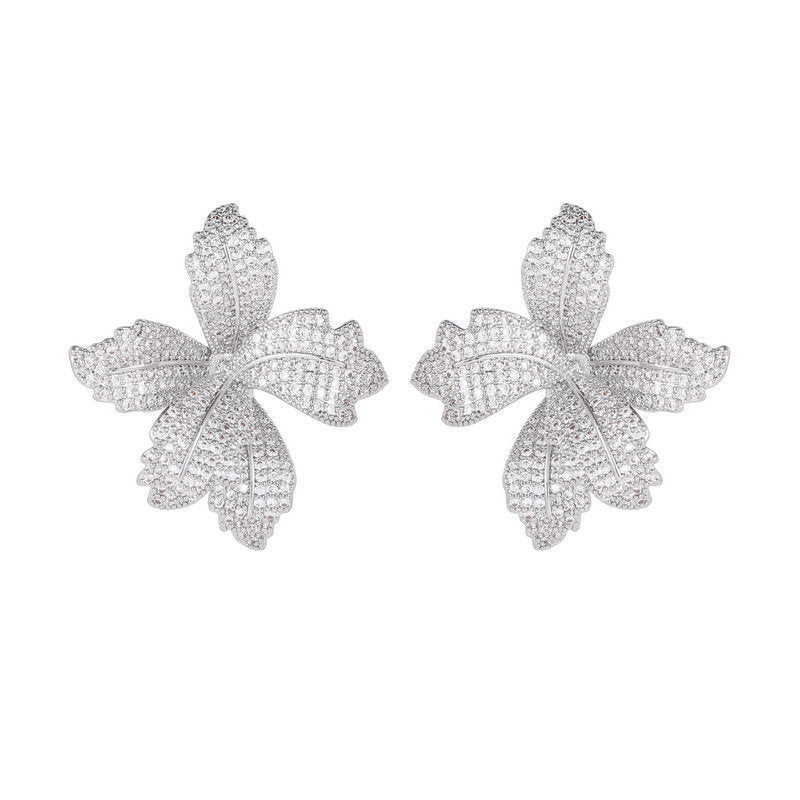 Inlaid Zircon Flower Niche Temperament Style Earrings