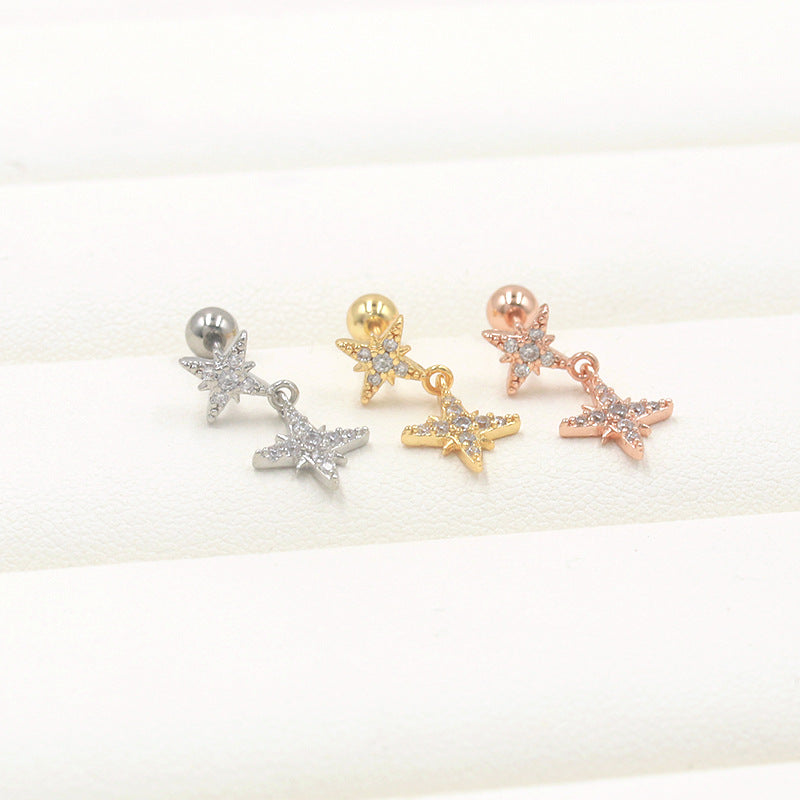 Inlaid Zircon Star Ear Bone Pin Earrings