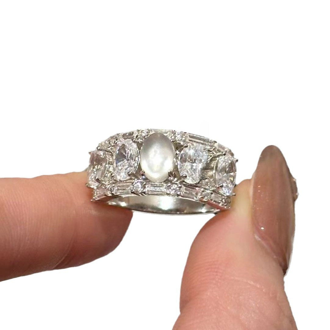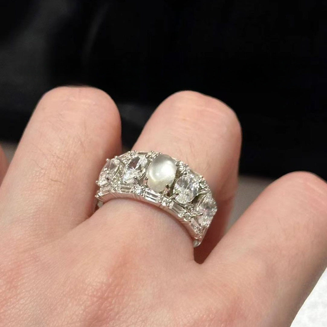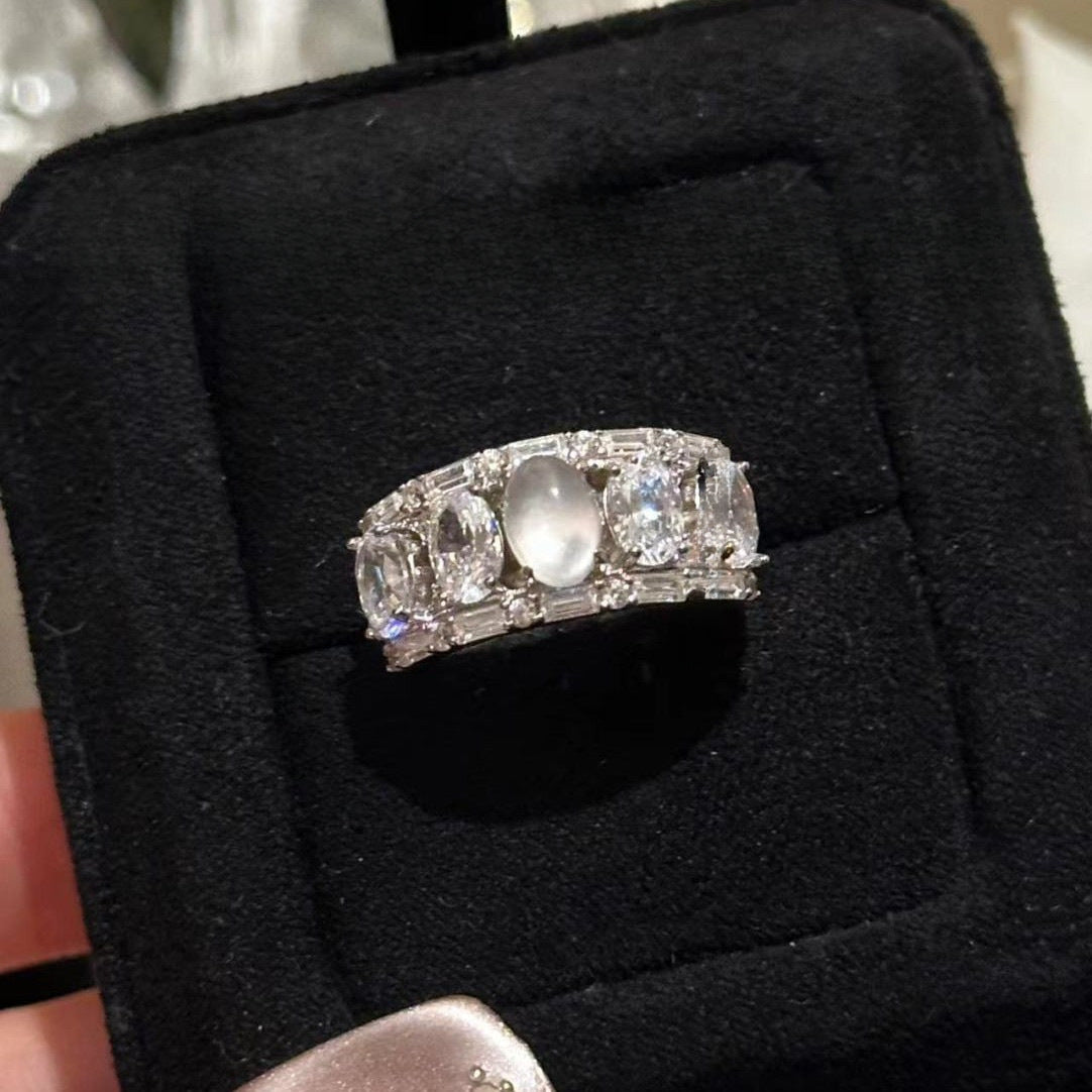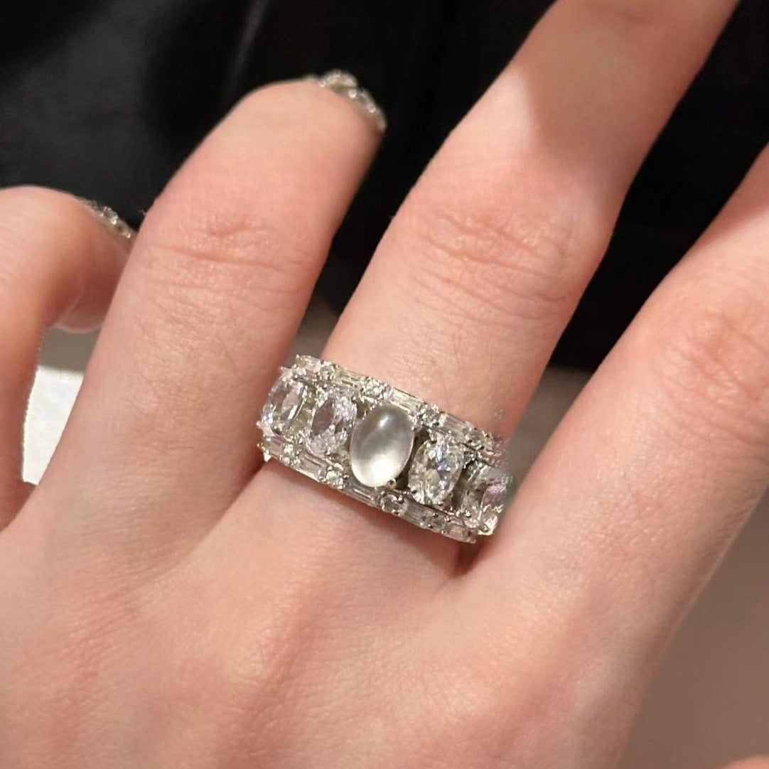 Jade Female Sterling Sier High Ice Chalcedony Denier Full Rings