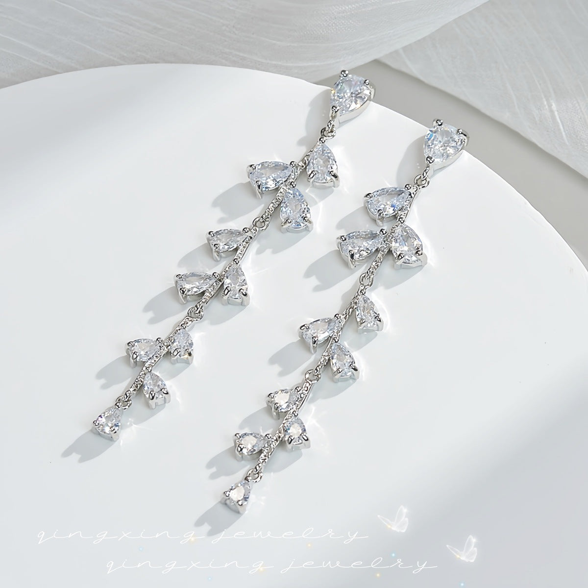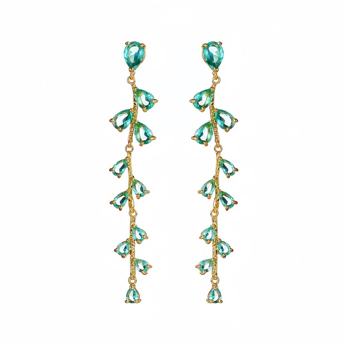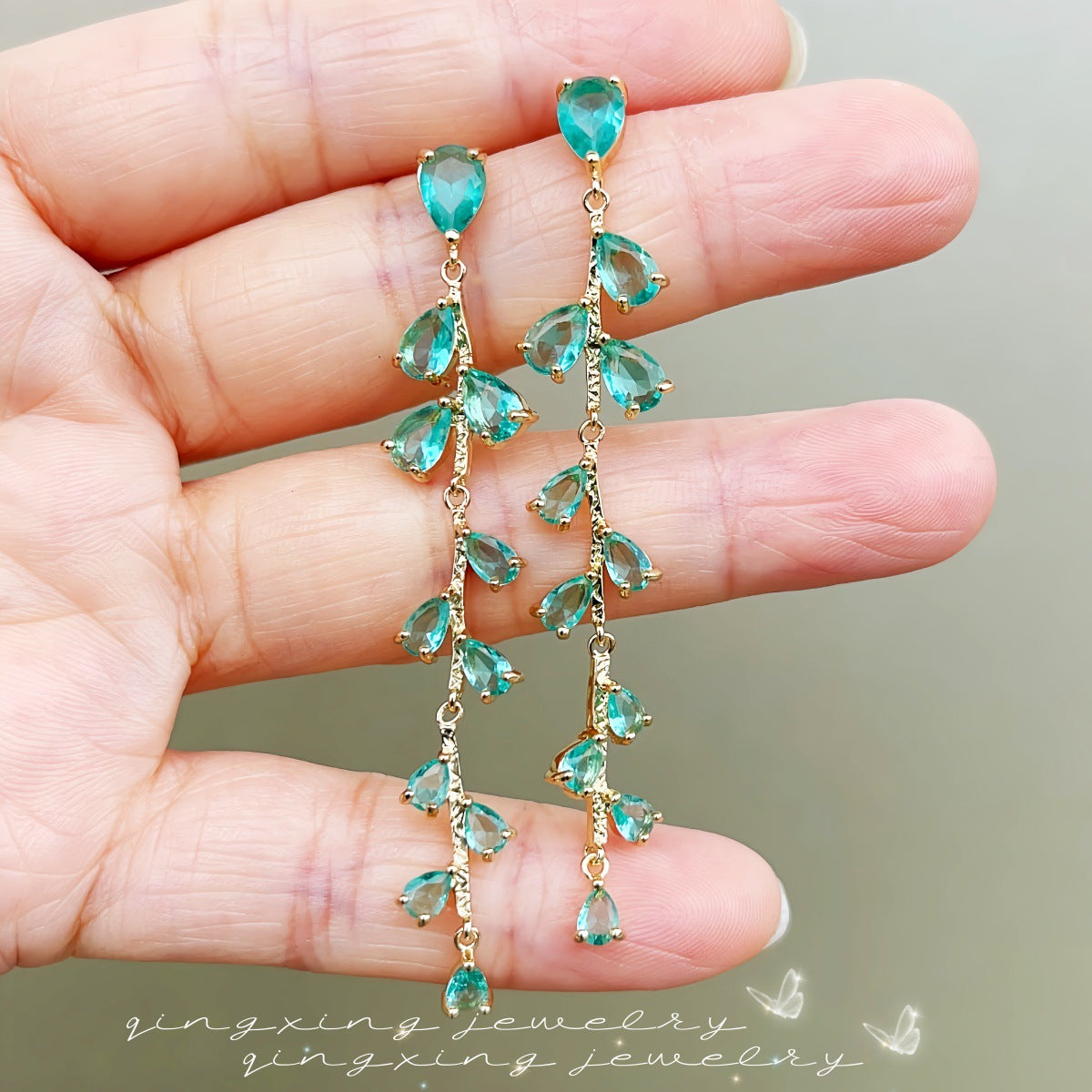 Light Green Long Zircon Tassel Niche Earrings