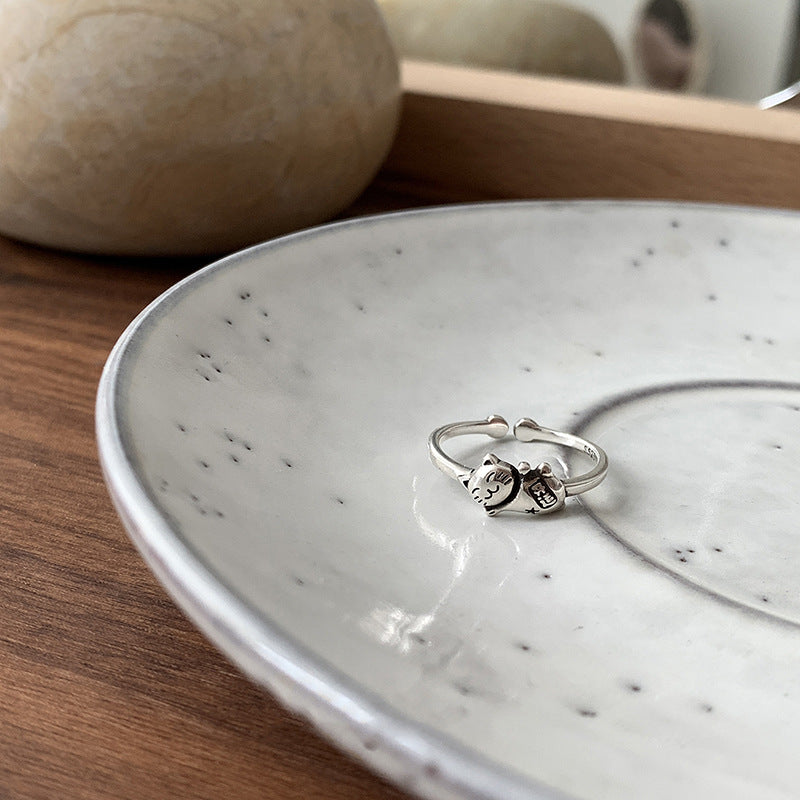 Lucky Cat Female Fashion Retro Minority Design Opening Rings