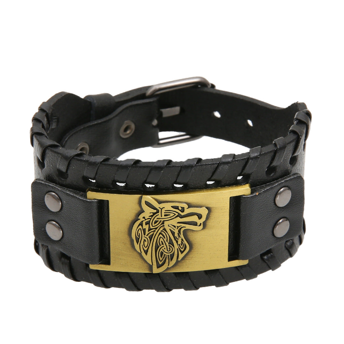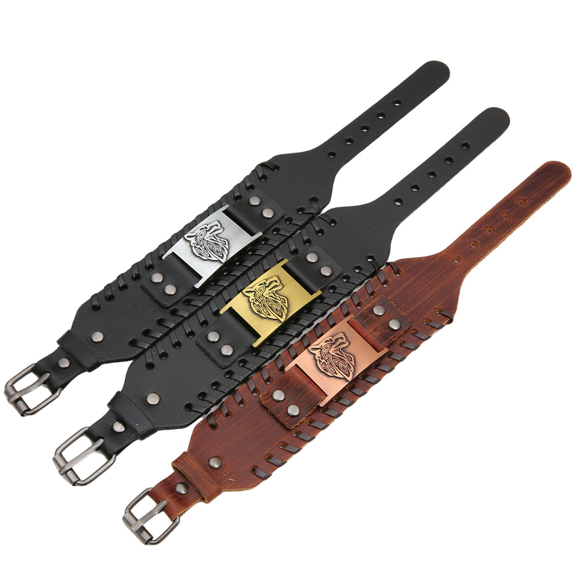 Men's Alloy Wolf Head Accessories Width Leather Bracelets