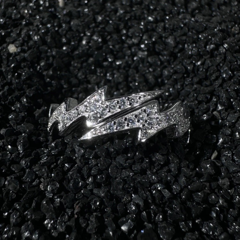 Men's Diamond Lightning Trendy Irregular Ecg Index Rings
