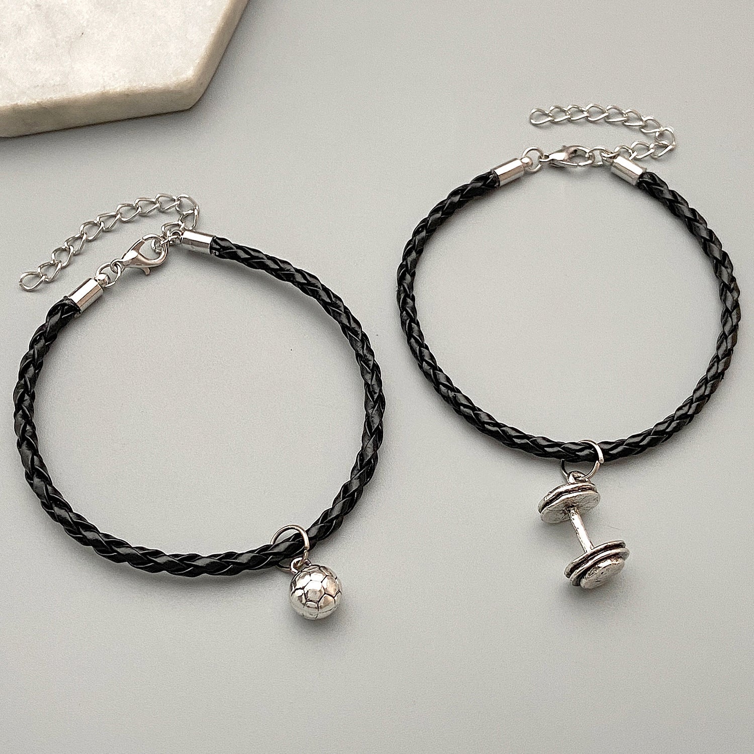 Men's Dumbbell Woven Twisted Style Simple Black Bracelets